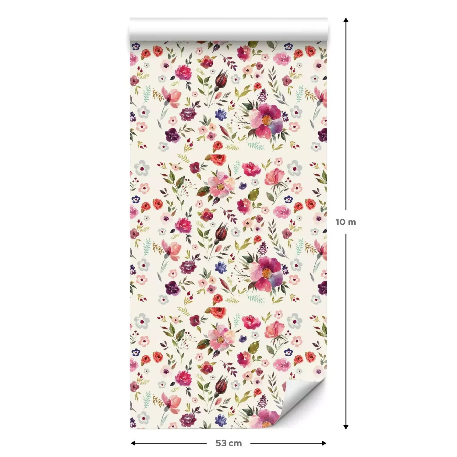 Eine Standard-Tapetenrolle hat die Maße 0,53 m x 10 m und deckt eine Wandfläche von etwa 5 m² ab.
