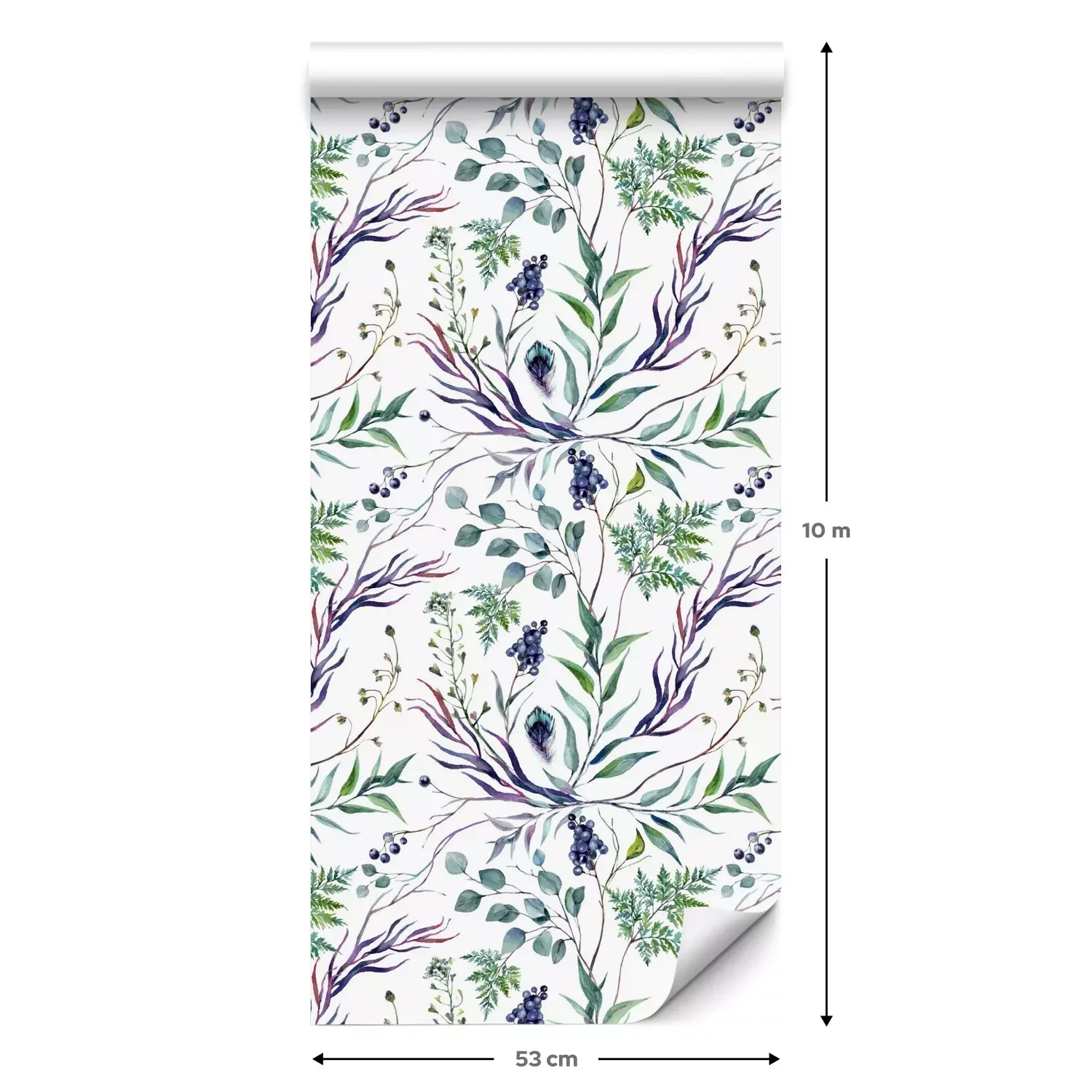 Eine Standard-Tapetenrolle hat die Maße 0,53 m x 10 m und deckt eine Wandfläche von etwa 5 m² ab.