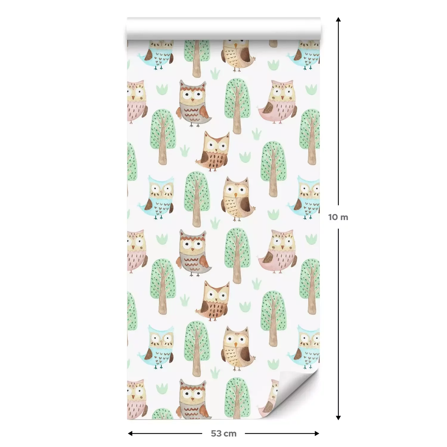 Eine Standard-Tapetenrolle hat die Maße 0,53 m x 10 m und deckt eine Wandfläche von etwa 5 m² ab.