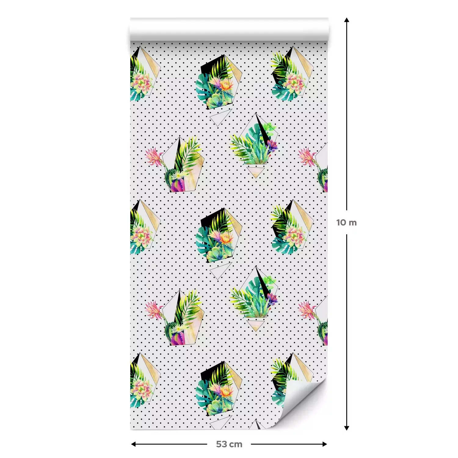 Eine Standard-Tapetenrolle hat die Maße 0,53 m x 10 m und deckt eine Wandfläche von etwa 5 m² ab.