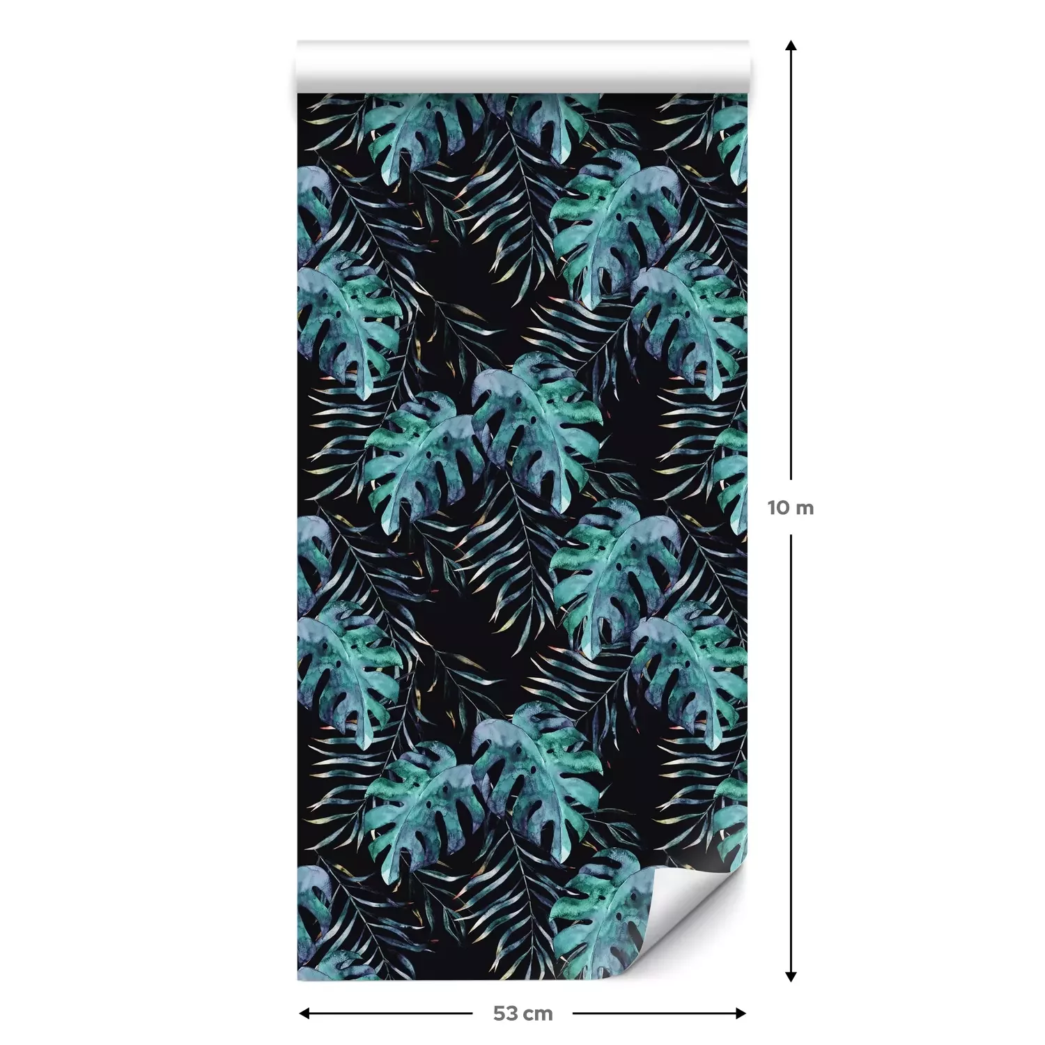 Eine Standard-Tapetenrolle hat die Maße 0,53 m x 10 m und deckt eine Wandfläche von etwa 5 m² ab.