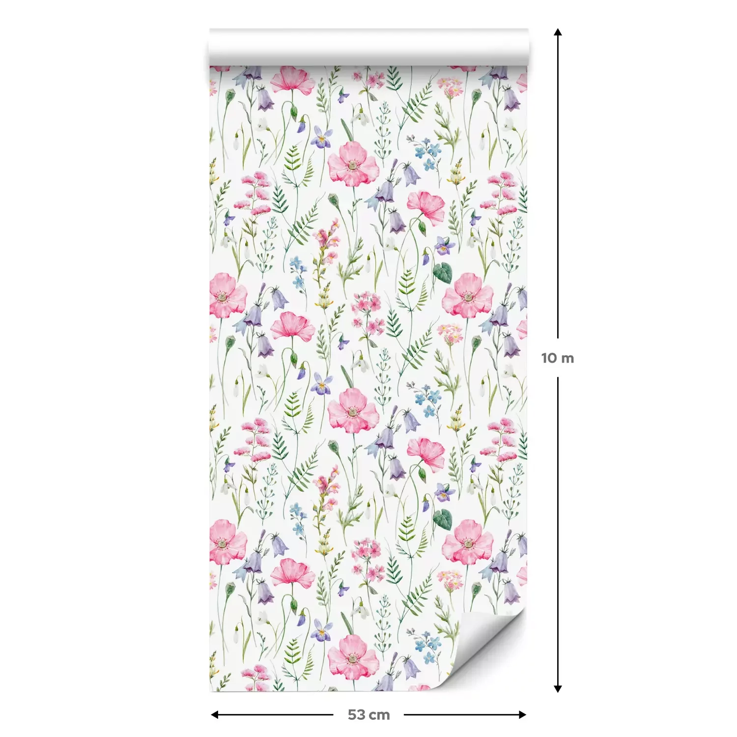 Eine Standard-Tapetenrolle hat die Maße 0,53 m x 10 m und deckt eine Wandfläche von etwa 5 m² ab.