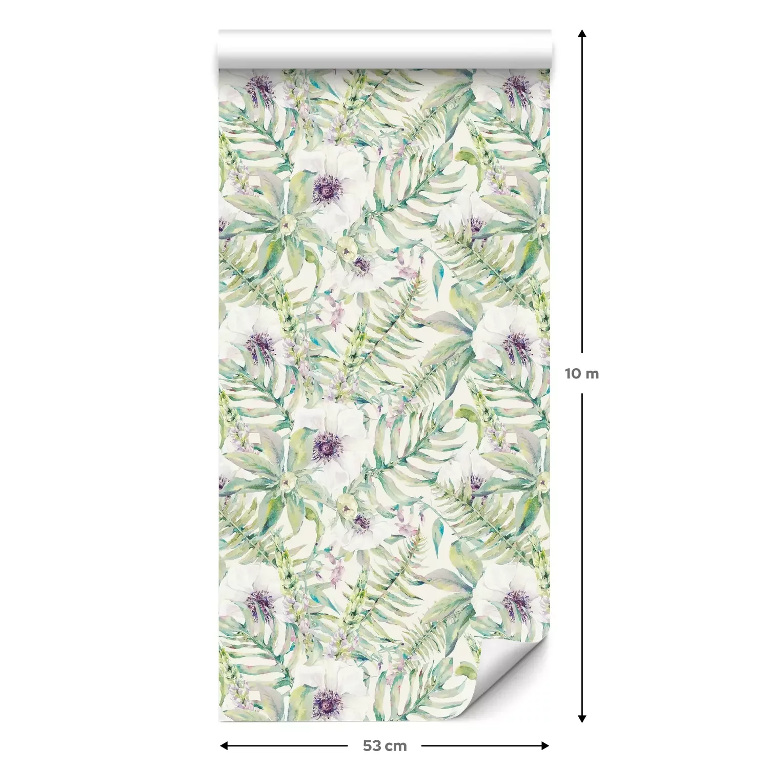 Eine Standard-Tapetenrolle hat die Maße 0,53 m x 10 m und deckt eine Wandfläche von etwa 5 m² ab.