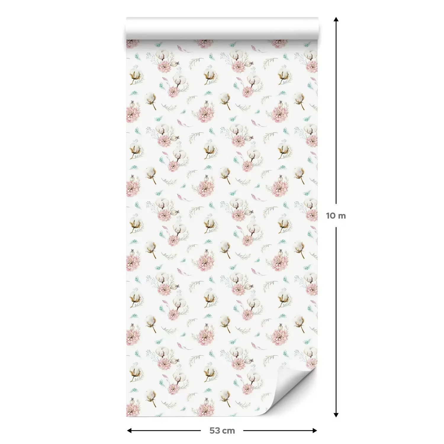 Eine Standard-Tapetenrolle hat die Maße 0,53 m x 10 m und deckt eine Wandfläche von etwa 5 m² ab.