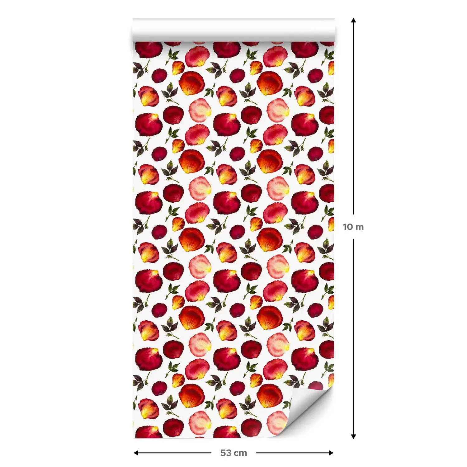 Eine Standard-Tapetenrolle hat die Maße 0,53 m x 10 m und deckt eine Wandfläche von etwa 5 m² ab.