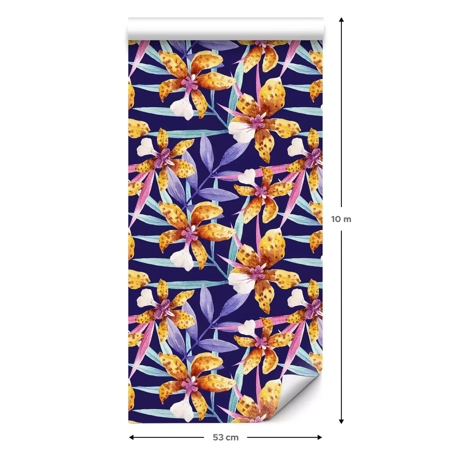 Eine Standard-Tapetenrolle hat die Maße 0,53 m x 10 m und deckt eine Wandfläche von etwa 5 m² ab.