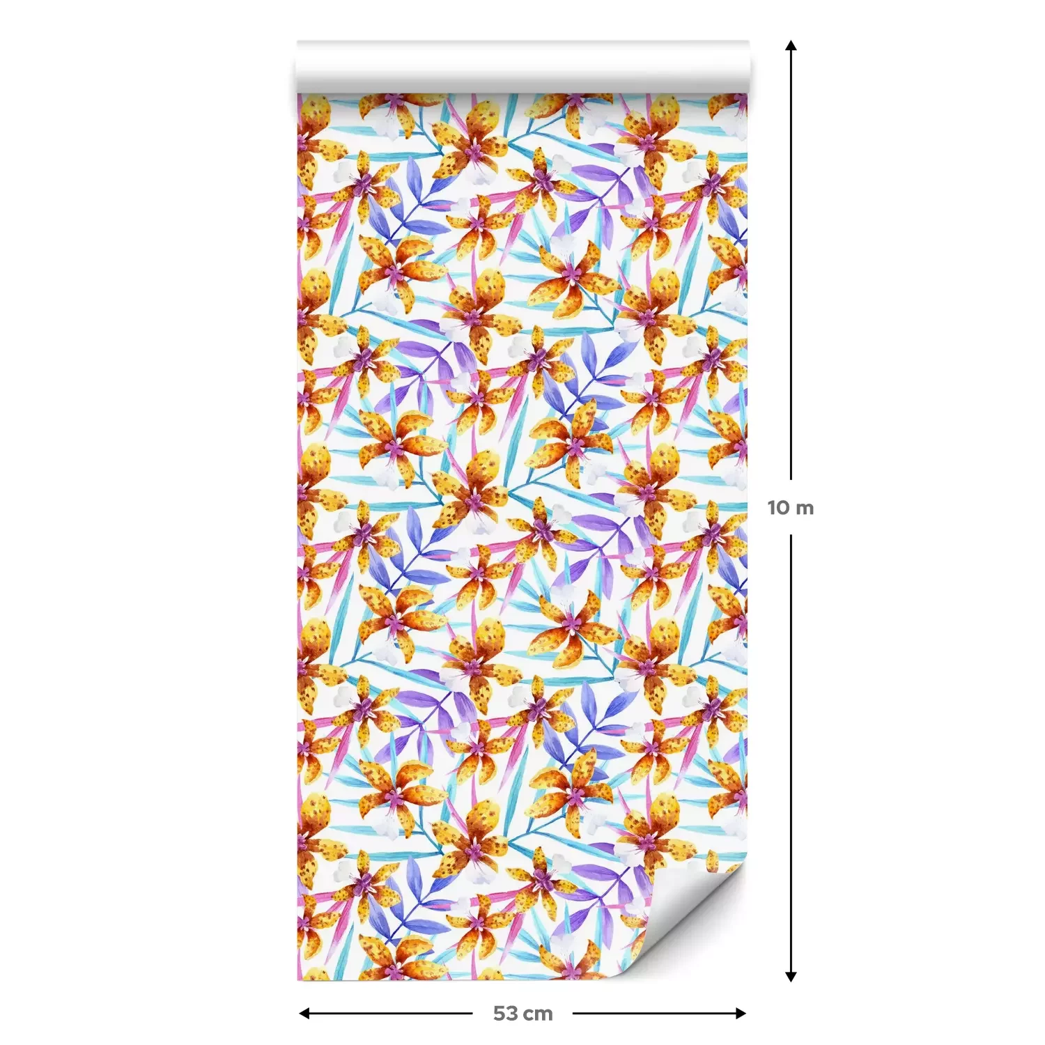 Eine Standard-Tapetenrolle hat die Maße 0,53 m x 10 m und deckt eine Wandfläche von etwa 5 m² ab.
