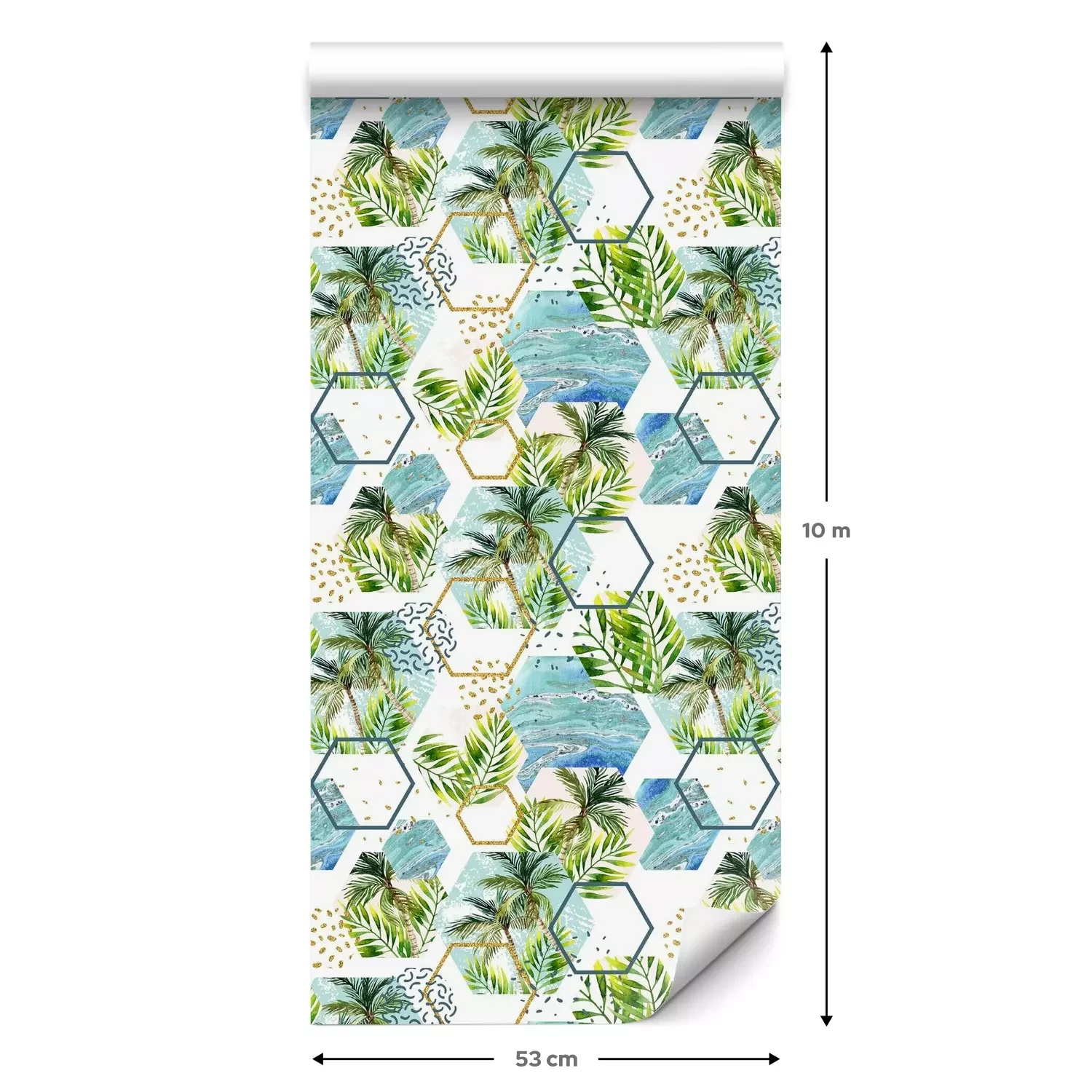 Eine Standard-Tapetenrolle hat die Maße 0,53 m x 10 m und deckt eine Wandfläche von etwa 5 m² ab.