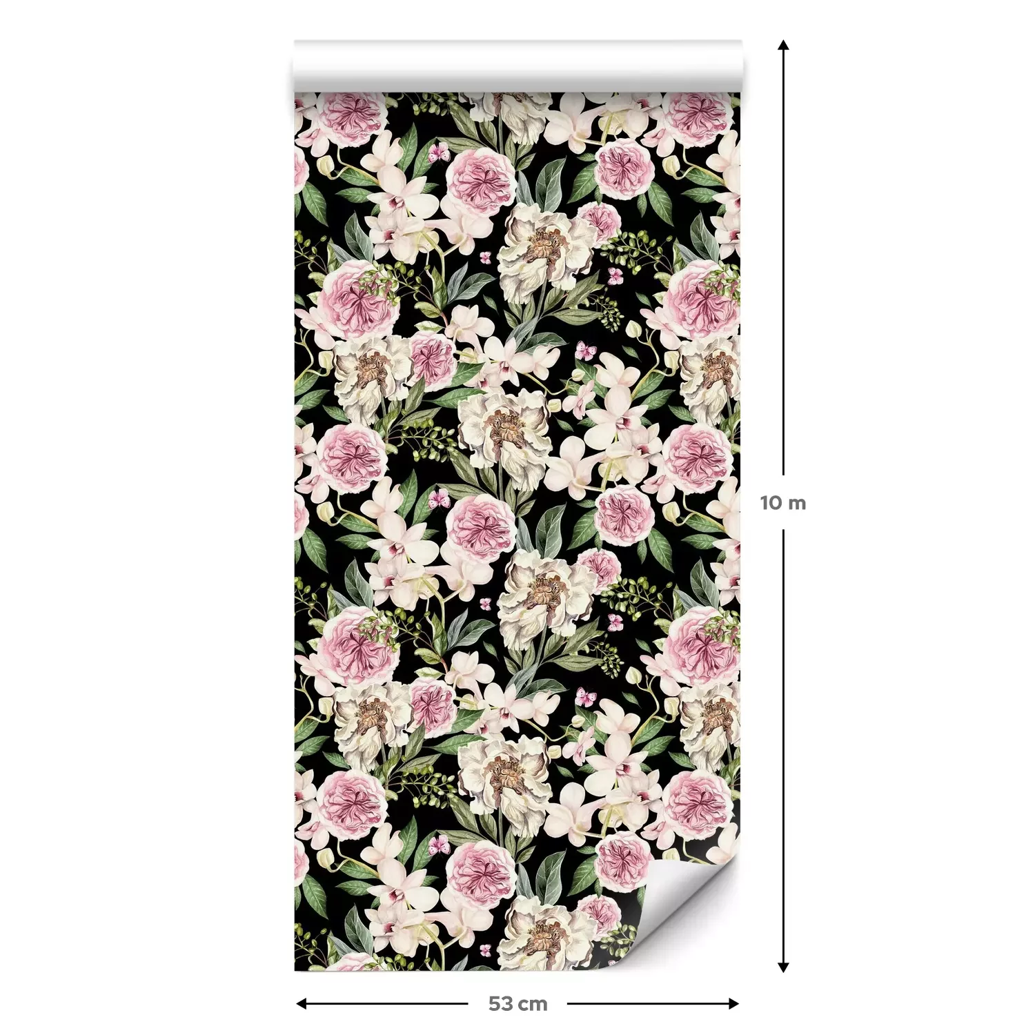 Eine Standard-Tapetenrolle hat die Maße 0,53 m x 10 m und deckt eine Wandfläche von etwa 5 m² ab.