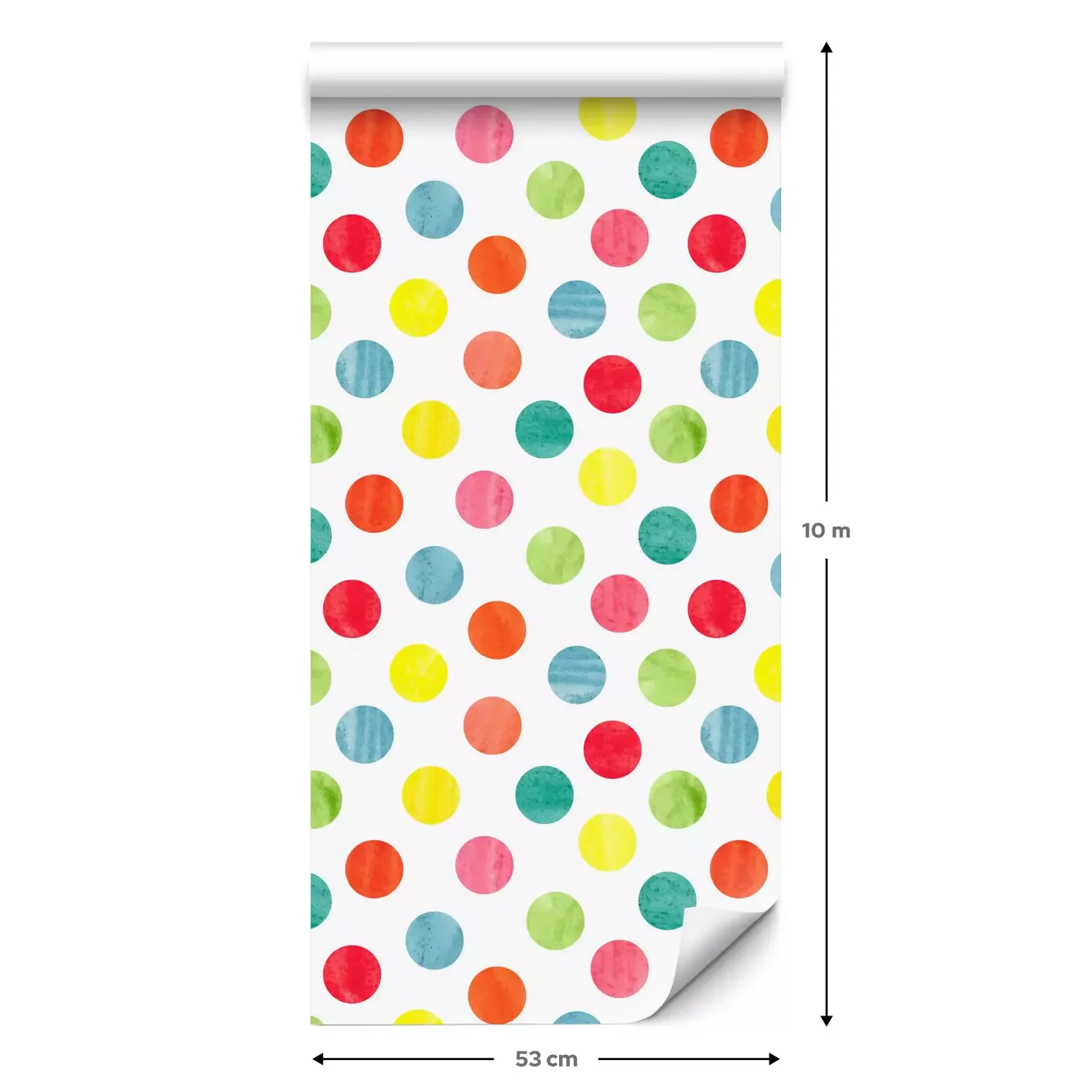 Eine Standard-Tapetenrolle hat die Maße 0,53 m x 10 m und deckt eine Wandfläche von etwa 5 m² ab.