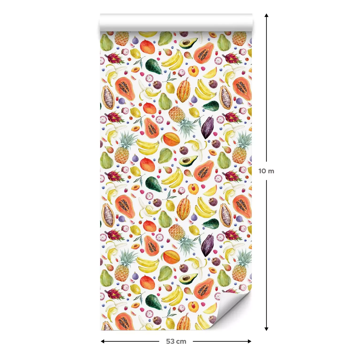 Eine Standard-Tapetenrolle hat die Maße 0,53 m x 10 m und deckt eine Wandfläche von etwa 5 m² ab.