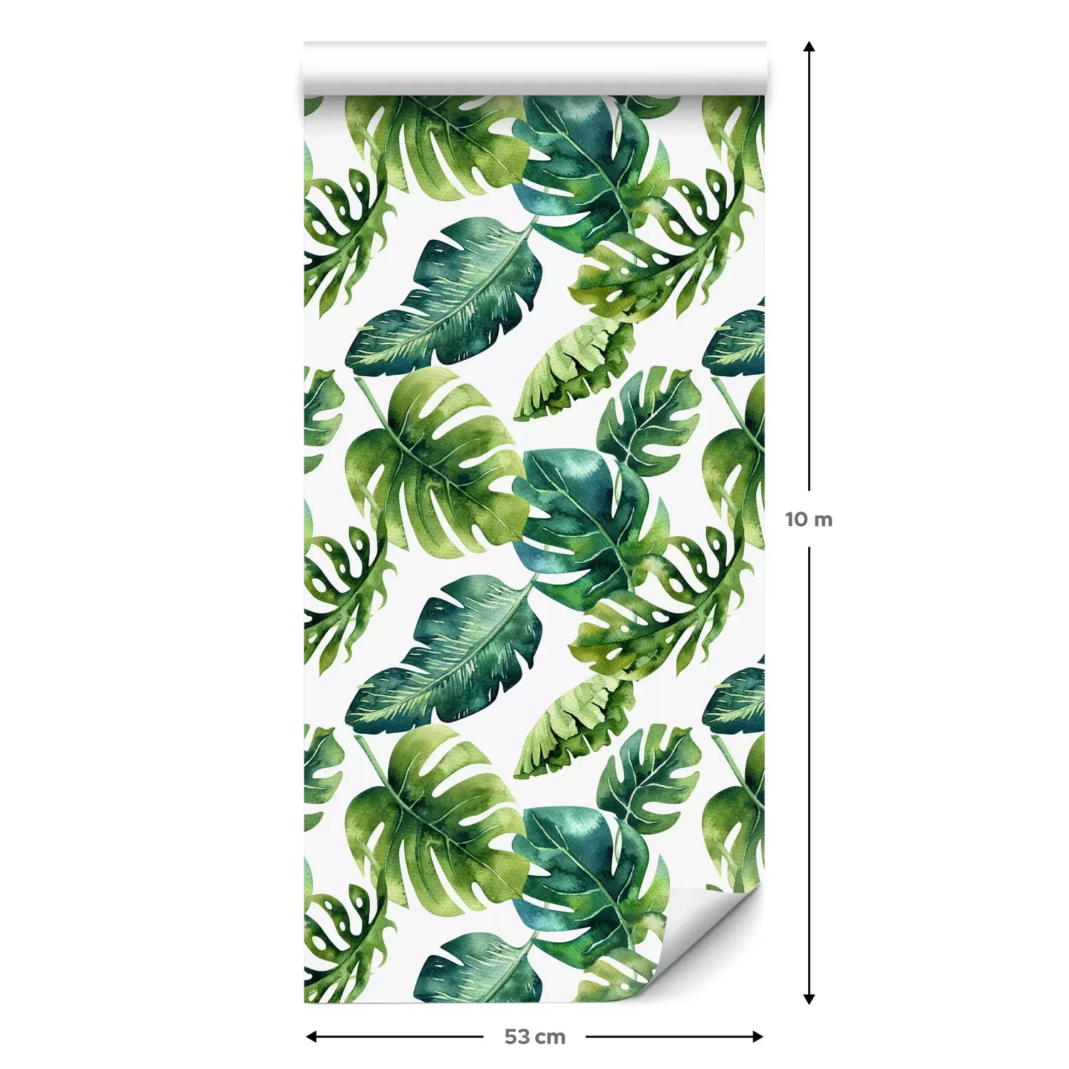 Eine Standard-Tapetenrolle hat die Maße 0,53 m x 10 m und deckt eine Wandfläche von etwa 5 m² ab.