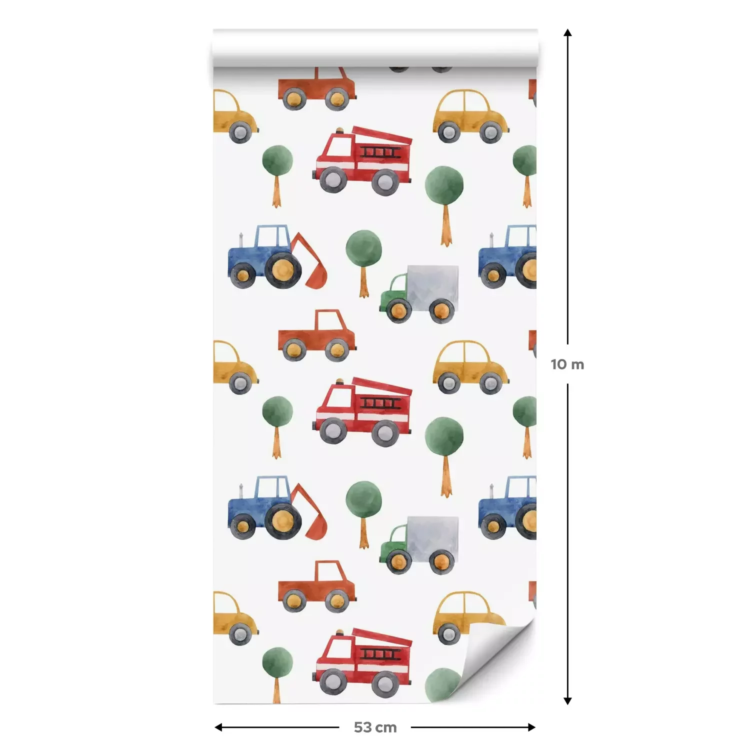 Eine Standard-Tapetenrolle hat die Maße 0,53 m x 10 m und deckt eine Wandfläche von etwa 5 m² ab.