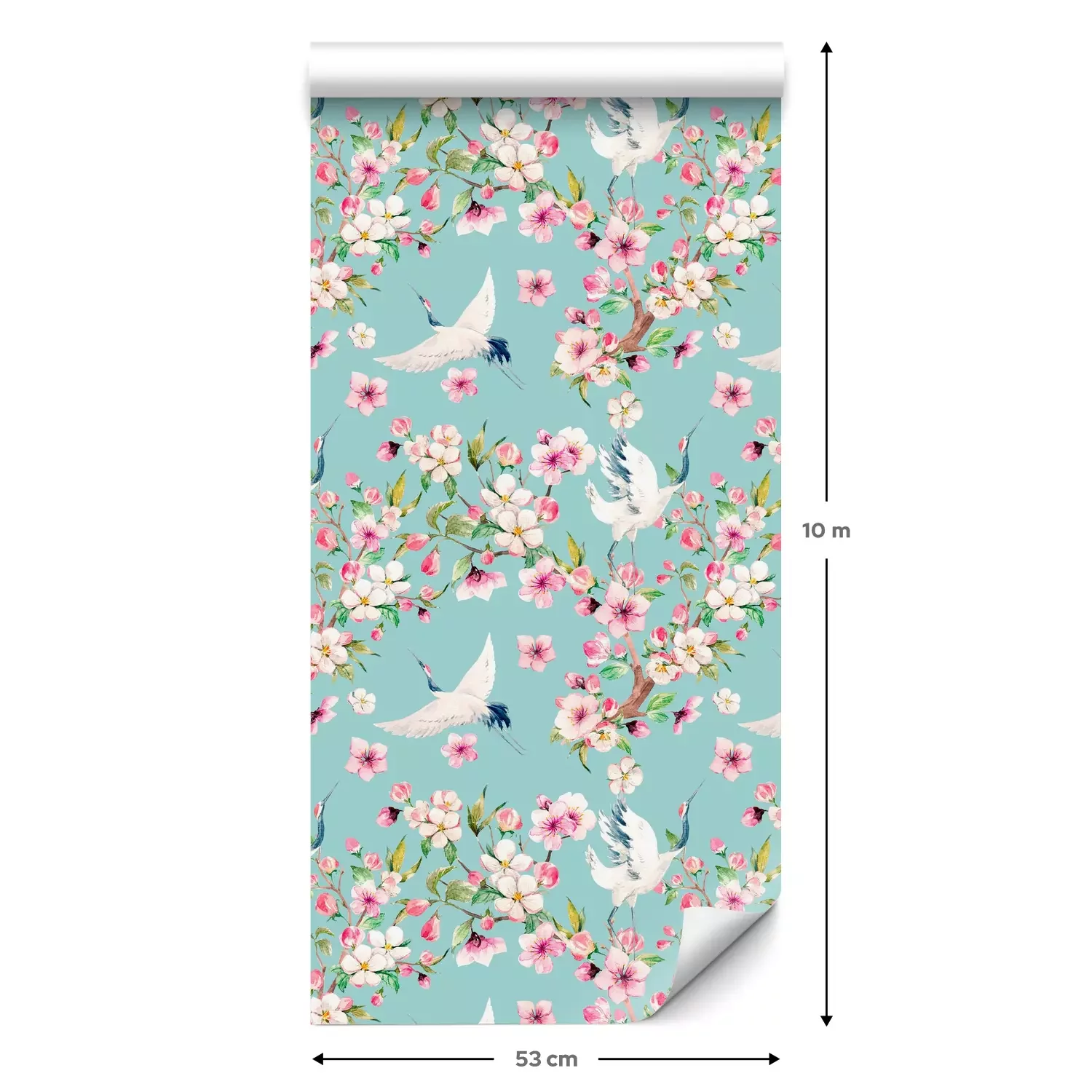 Eine Standard-Tapetenrolle hat die Maße 0,53 m x 10 m und deckt eine Wandfläche von etwa 5 m² ab.