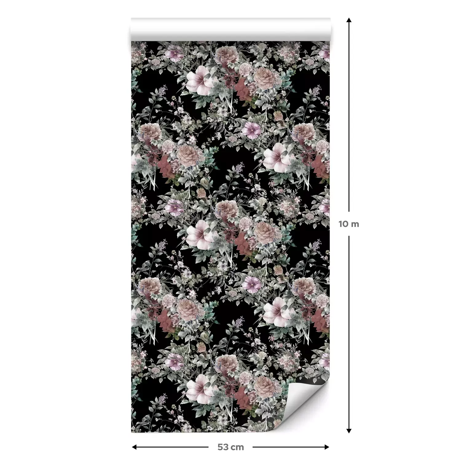 Eine Standard-Tapetenrolle hat die Maße 0,53 m x 10 m und deckt eine Wandfläche von etwa 5 m² ab.