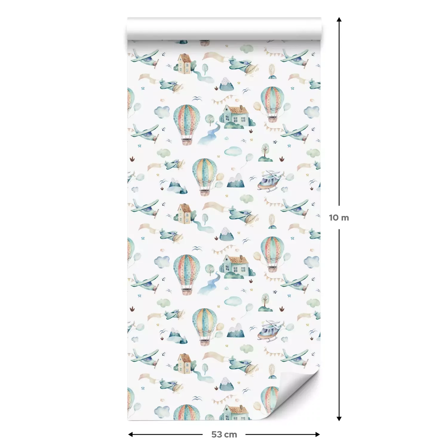 Eine Standard-Tapetenrolle hat die Maße 0,53 m x 10 m und deckt eine Wandfläche von etwa 5 m² ab.