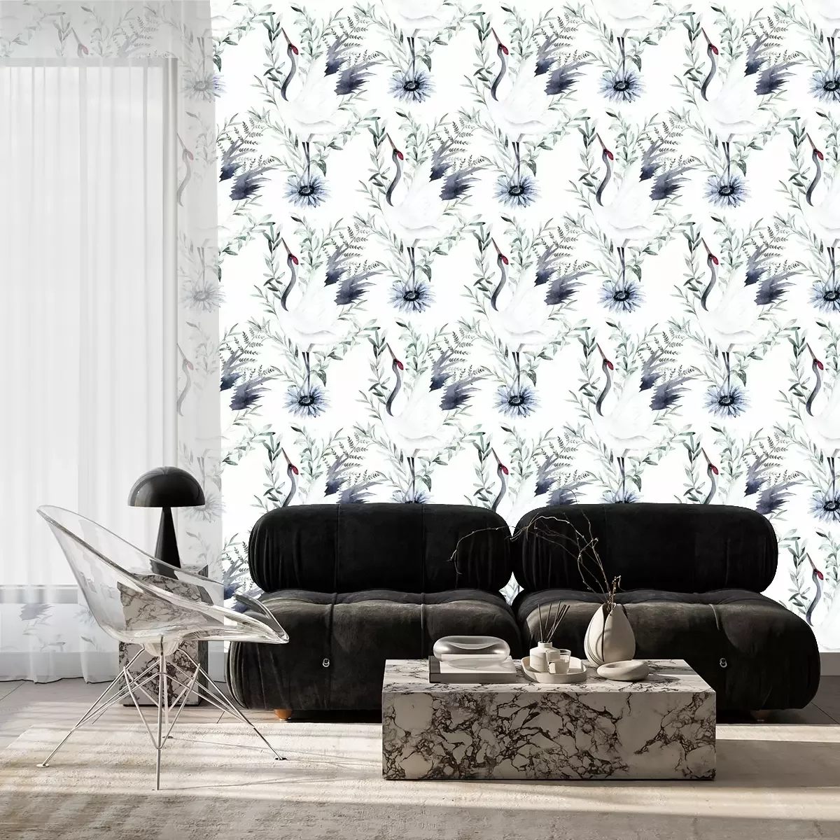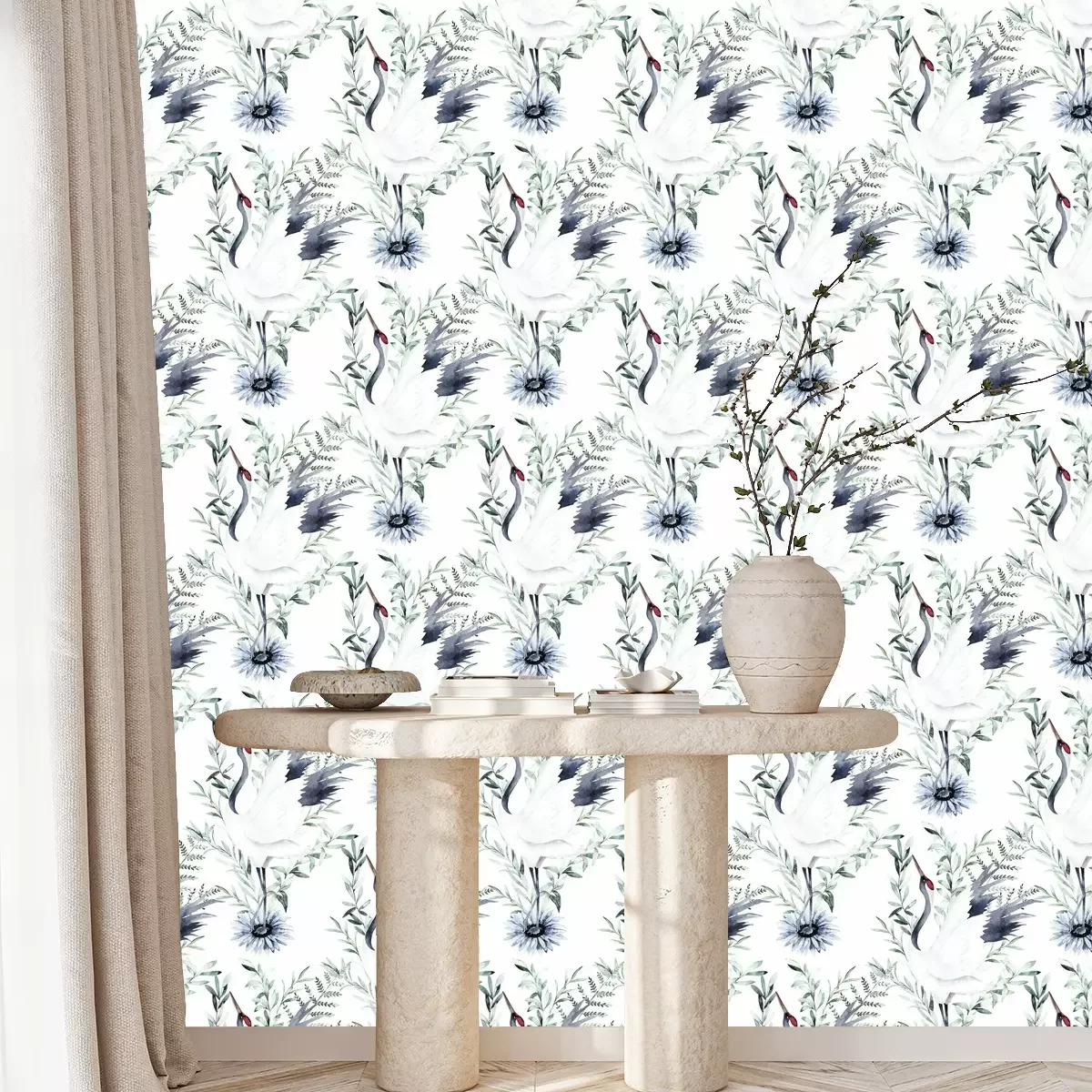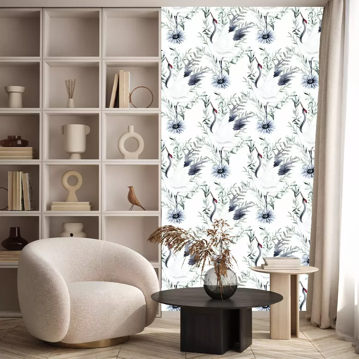 Dieses Muster ist ein wahres Kunstwerk, das ein einzigartiges und harmonisches Ambiente in Ihr Interieur bringt. Eine Tapete Kranich bildet den perfekten Hintergrund für eine Komposition, die sich auf sanfte, hellblaue Farben und natürliche Vegetation konzentriert. Sie fühlen sich wie in einem Garten voller Ruhe. Das Hauptelement dieser Tapete sind subtile Blumen, die Frische und Zartheit ausstrahlen. Die hellblaue Farbe der Blumen sorgt für ihren einzigartigen Charme und wird mit klarem Himmel und Ruhe assoziiert. Wenn Sie einen Raum der Entspannung zaubern wollen, setzen Sie auf diese Tapete. Kranich auf diesem Muster ist die perfekte Ergänzung. Die Blumen sind ein echter Hingucker und bilden den Mittelpunkt an der Wand, der sofort die Aufmerksamkeit auf sich zieht und der Einrichtung eine besondere Note verleiht. Eine japanische Tapete zeigt auch Eukalyptuszweige, die ihr einen natürlichen, organischen Touch verleihen. Diese Zweige symbolisieren Frische und Leben und bringen einen Hauch von Natur in den Raum. Eine Tapete japanisch kann sich auch positiv auf unser Wohlbefinden und unsere Gesundheit auswirken und eine Atmosphäre der Entspannung und Erholung schaffen. Zu dieser schönen Pflanzenlandschaft gehört auch ein weißer Kranich. Dieser elegante Vogel ist in der japanischen Kultur ein Symbol für Glück, Weisheit und Langlebigkeit. Der Kranich, der diese Tapete schmückt, strahlt positive Energie aus und sorgt für ein ausgeglichenes Raumgefühl. Der Stil dieser Tapete ist japanisch mit Aquarellelementen. Man merkt sofort, dass sie handgezeichnet ist, was ihr einen einzigartigen Charme und Authentizität verleiht. Handgemalte Details und subtile Farben lassen eine japanische Tapete Tiefe und einen einzigartigen Charakter erhalten. Dies ist ein wahres Kunstwerk, das Einzigartigkeit und Individualität in Ihr Interieur bringt. Die Vorteile der Tapeten an der Wand sind von unschätzbarem Wert. Japanische Tapeten verleihen Ihrem Innenraum einen unverwechselbaren Charakter und Einzigartigkeit. Eine Kranich Tapete kann selbst den einfachsten Raum in einen Ort voller Stil und Eleganz verwandeln. Sie bringt eine Atmosphäre der Harmonie, Ruhe und Entspannung in den Innenraum. Eine Tapete Kranich mit einem weißen Hintergrund und Naturelementen ist äußerst universell. Eine japanische Tapete eignet sich sowohl für moderne, minimalistische Innenräume, denen sie Zartheit und Subtilität verleiht, als auch für klassische, elegante Arrangements, in denen sie eine Atmosphäre von Romantik und Raffinesse schafft. Sie bildet den perfekten Hintergrund für Möbel und Dekorationen. Sie lässt sie zur Geltung kommen und ihre Schönheit entfalten. Eine japanische Tapete ist die perfekte Wahl für alle, die ein Interieur voller Einzigartigkeit und Schönheit zaubern wollen.