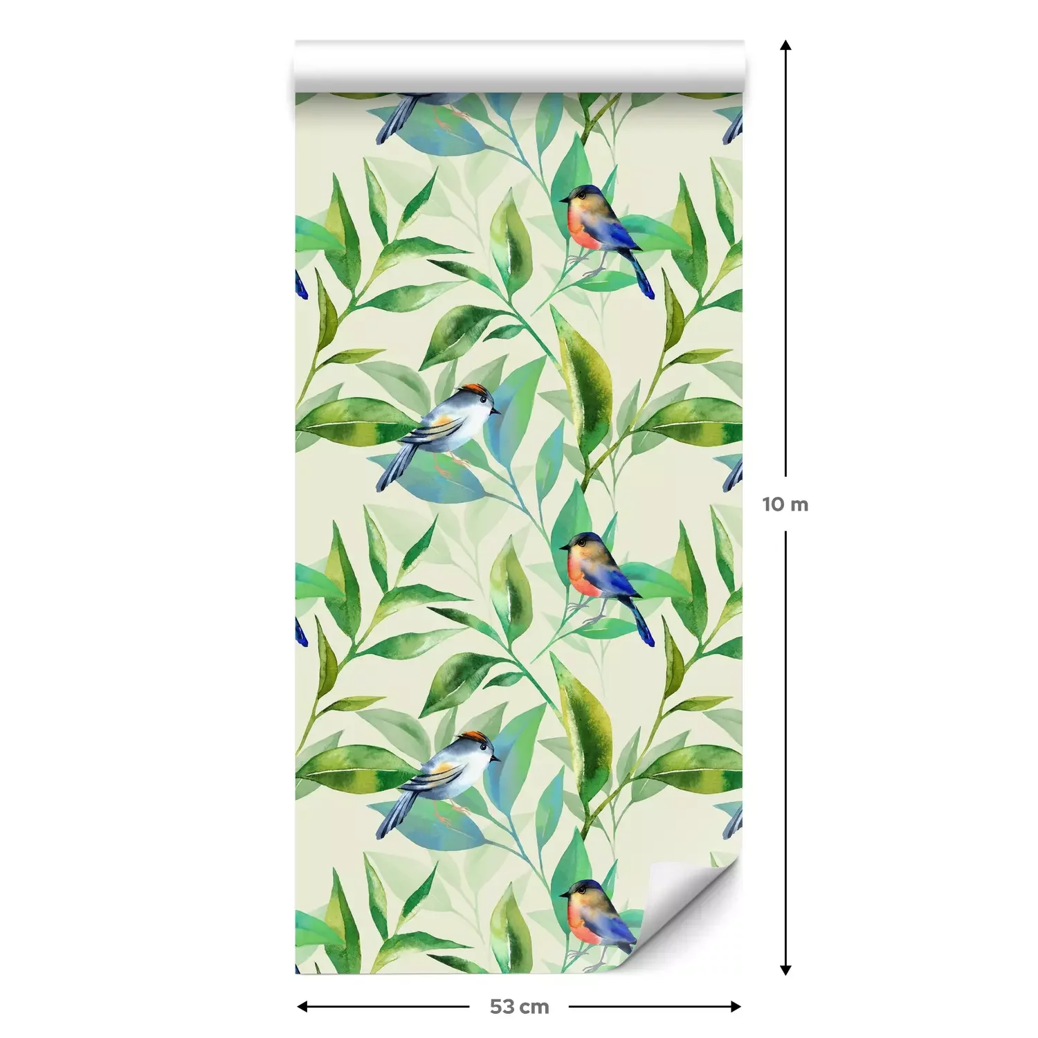 Eine Standard-Tapetenrolle hat die Maße 0,53 m x 10 m und deckt eine Wandfläche von etwa 5 m² ab.