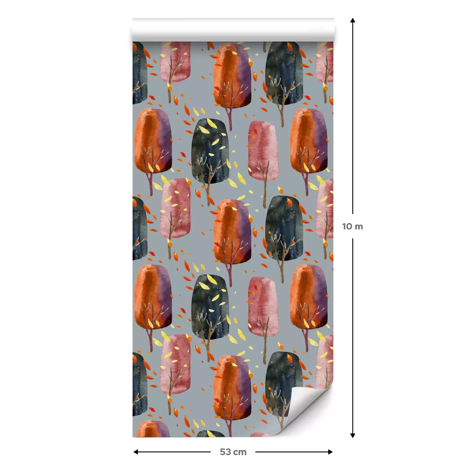 Eine Standard-Tapetenrolle hat die Maße 0,53 m x 10 m und deckt eine Wandfläche von etwa 5 m² ab.