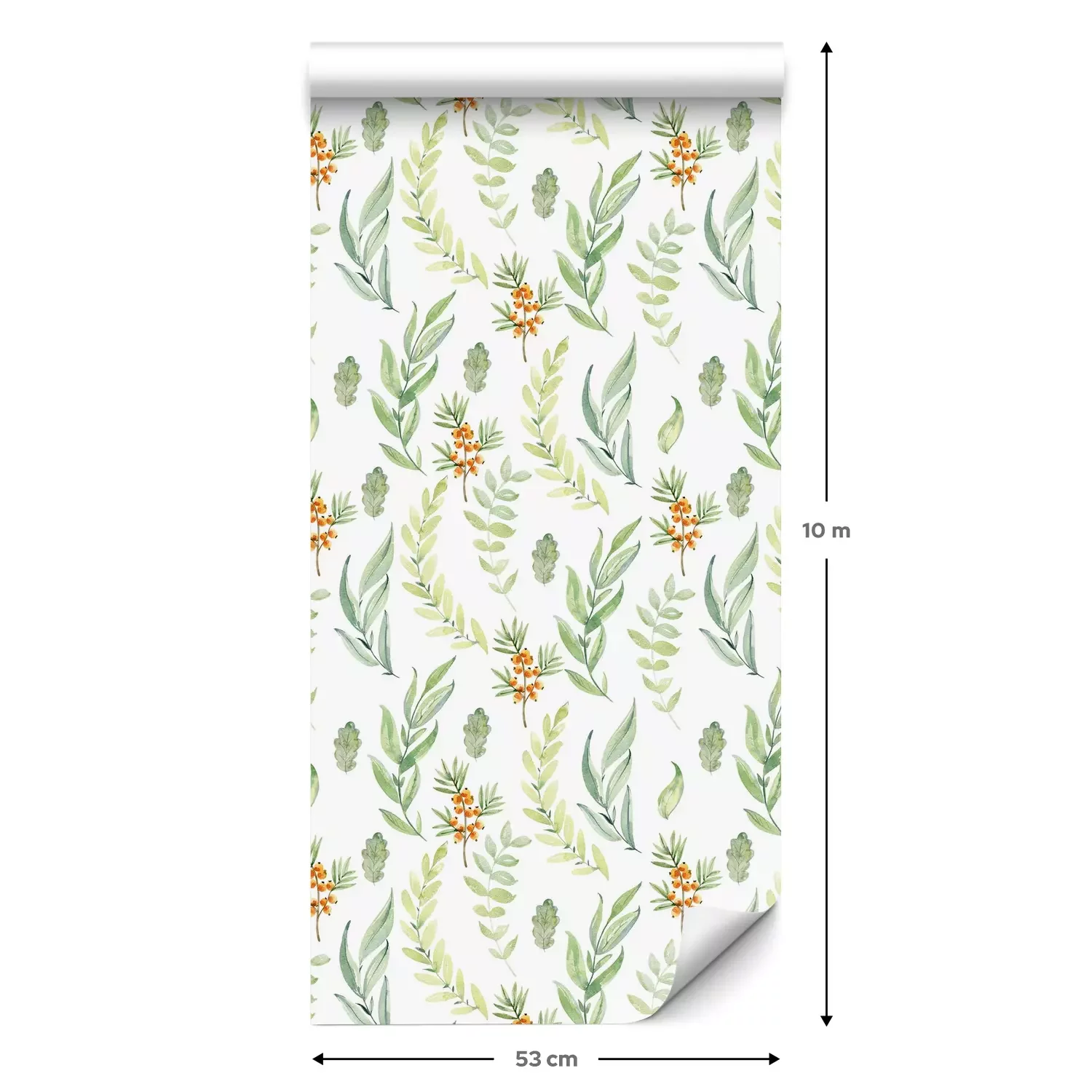 Eine Standard-Tapetenrolle hat die Maße 0,53 m x 10 m und deckt eine Wandfläche von etwa 5 m² ab.