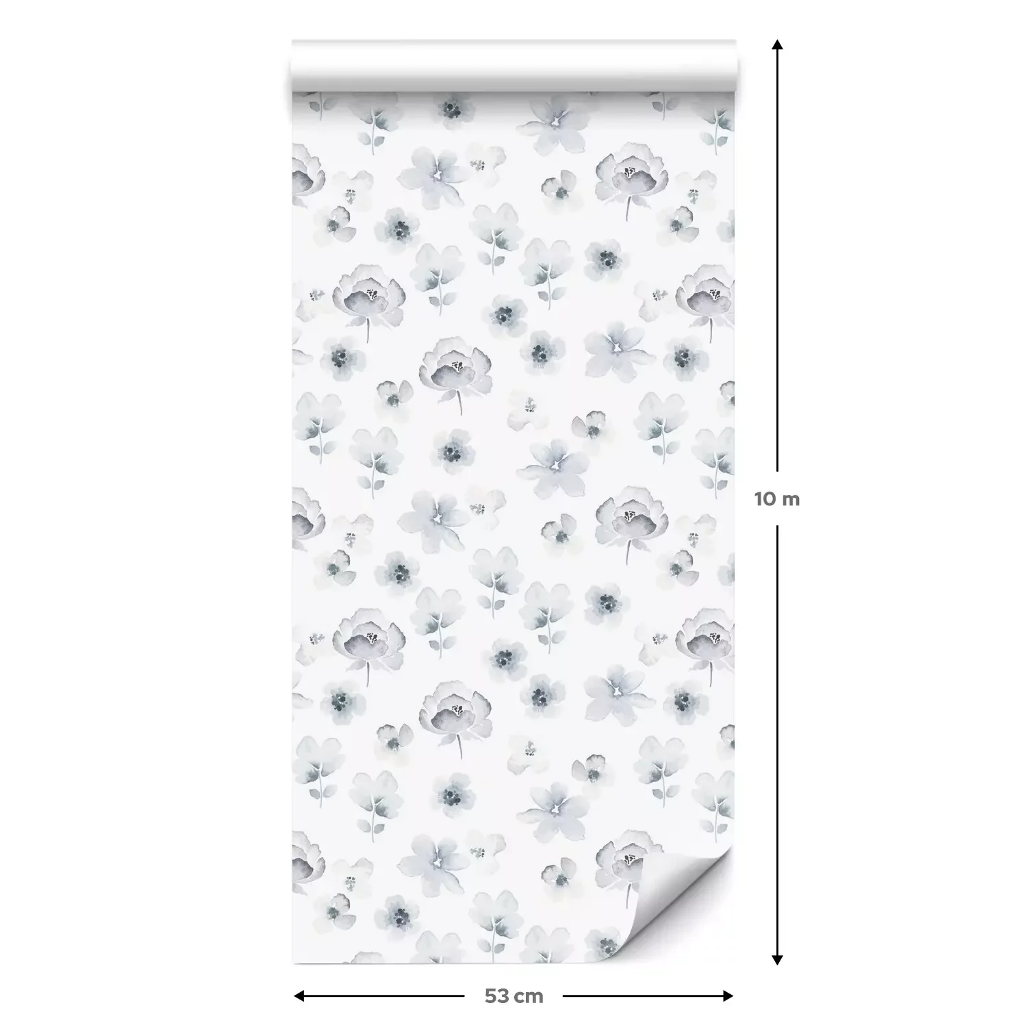 Eine Standard-Tapetenrolle hat die Maße 0,53 m x 10 m und deckt eine Wandfläche von etwa 5 m² ab.
