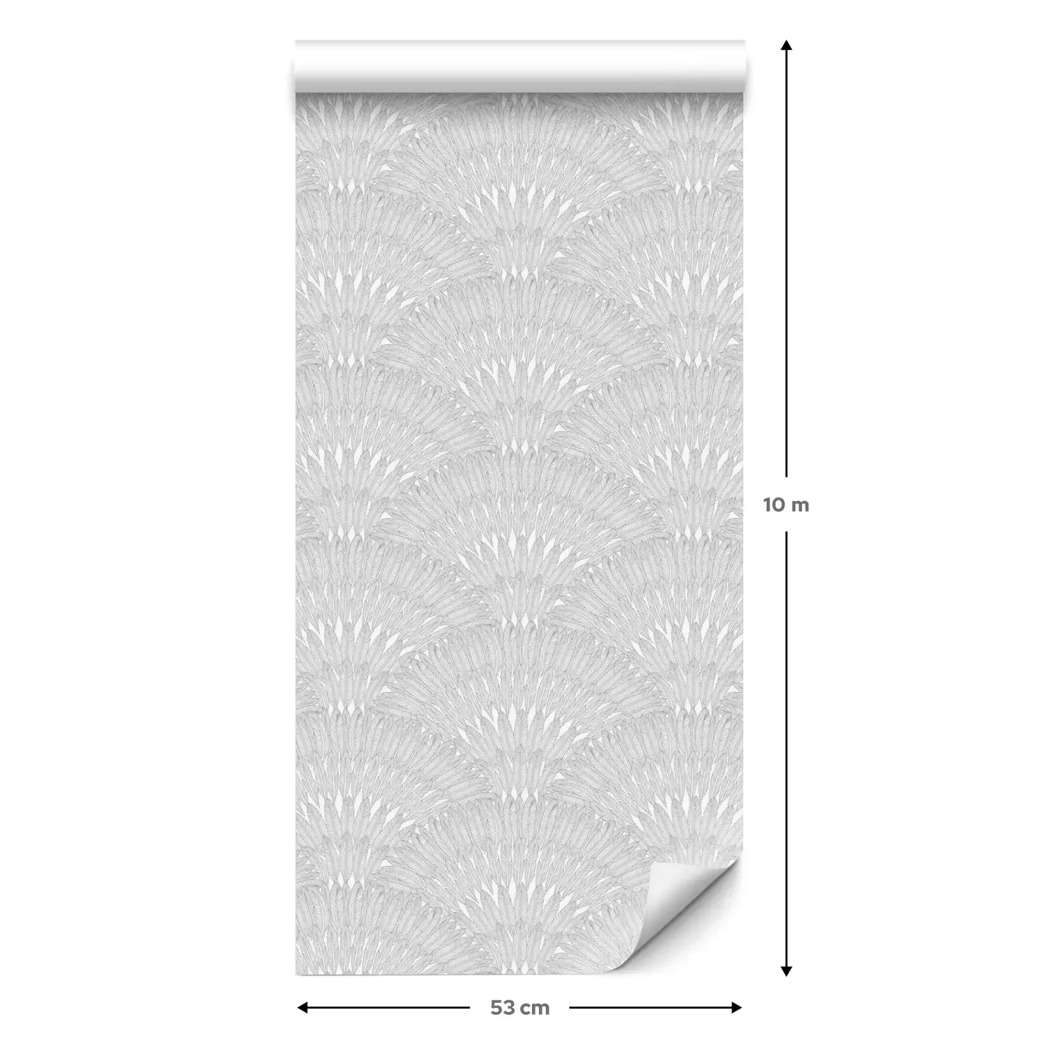 Eine Standard-Tapetenrolle hat die Maße 0,53 m x 10 m und deckt eine Wandfläche von etwa 5 m² ab.