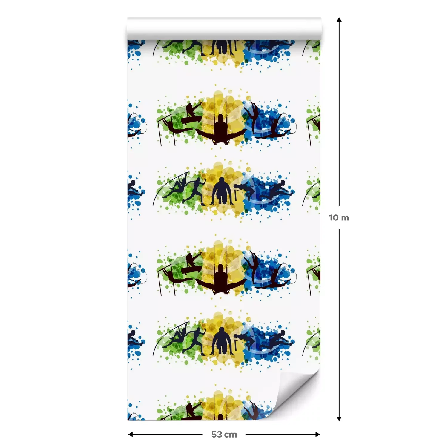 Eine Standard-Tapetenrolle hat die Maße 0,53 m x 10 m und deckt eine Wandfläche von etwa 5 m² ab.