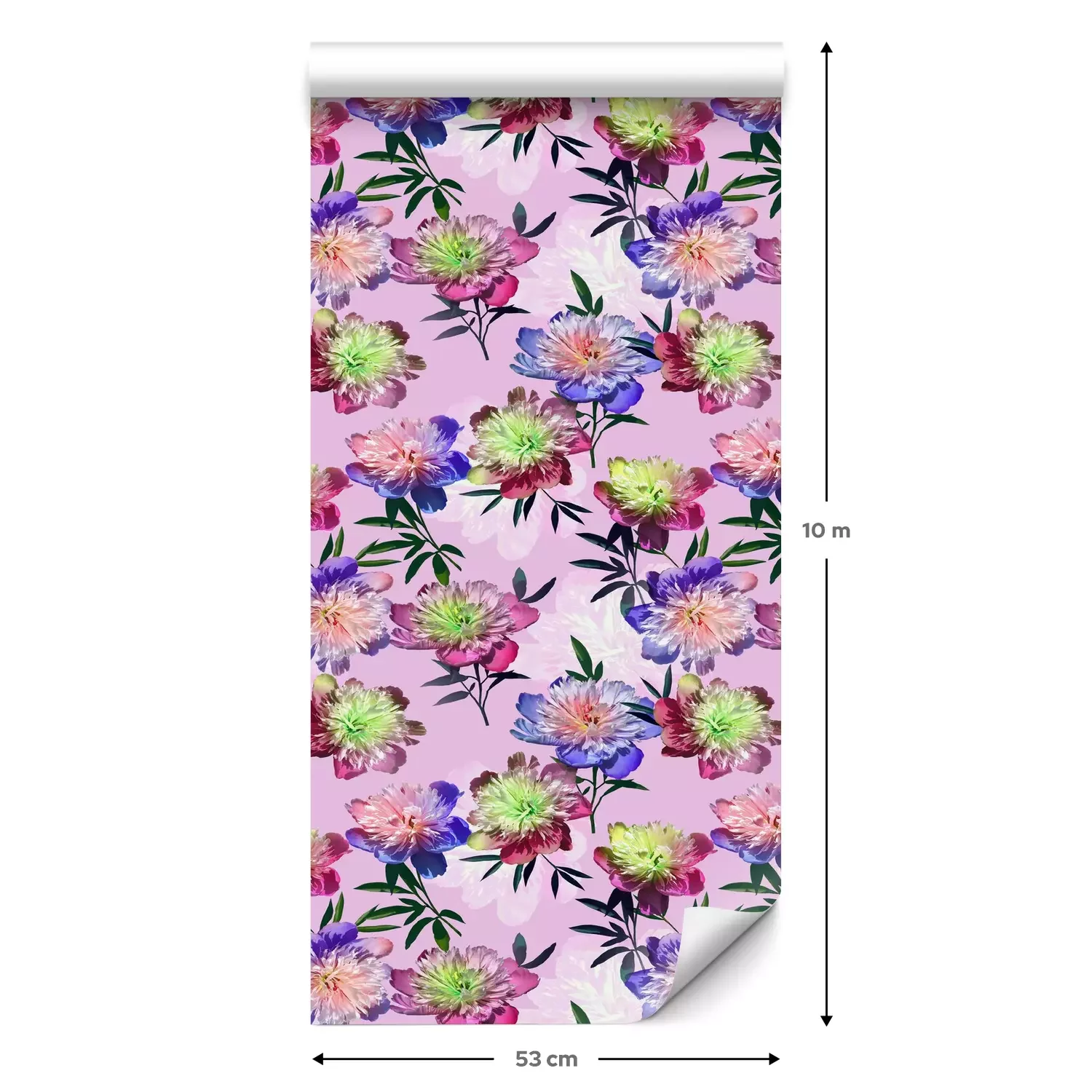 Eine Standard-Tapetenrolle hat die Maße 0,53 m x 10 m und deckt eine Wandfläche von etwa 5 m² ab.