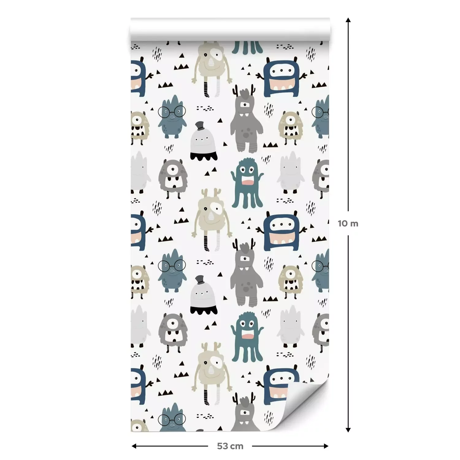 Eine Standard-Tapetenrolle hat die Maße 0,53 m x 10 m und deckt eine Wandfläche von etwa 5 m² ab.