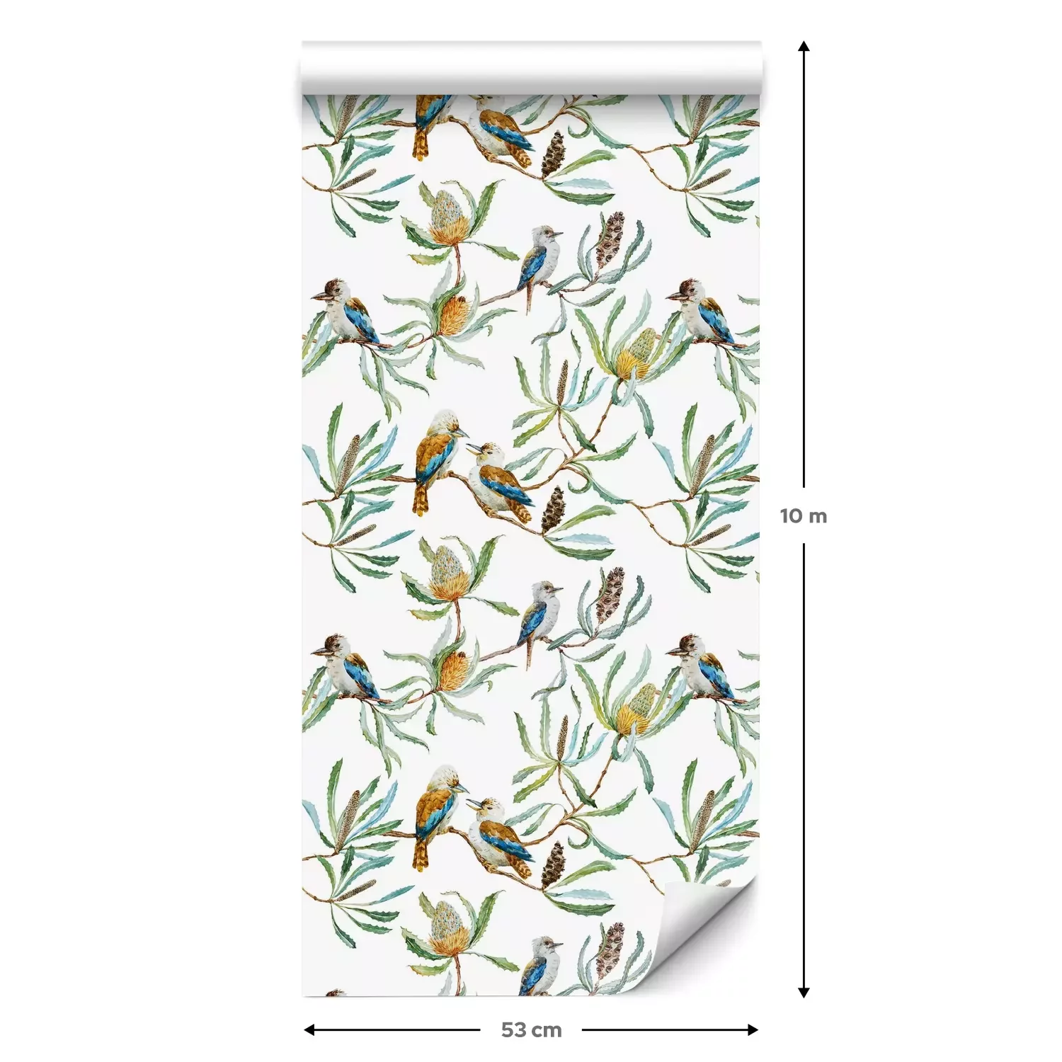 Eine Standard-Tapetenrolle hat die Maße 0,53 m x 10 m und deckt eine Wandfläche von etwa 5 m² ab.