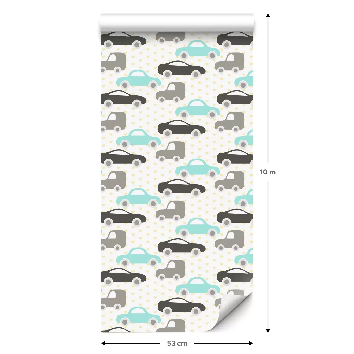 Eine Standard-Tapetenrolle hat die Maße 0,53 m x 10 m und deckt eine Wandfläche von etwa 5 m² ab.