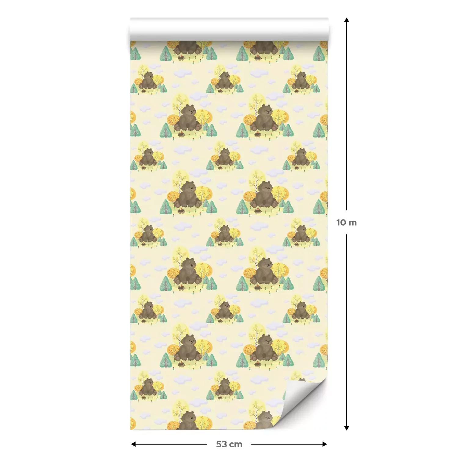 Eine Standard-Tapetenrolle hat die Maße 0,53 m x 10 m und deckt eine Wandfläche von etwa 5 m² ab.