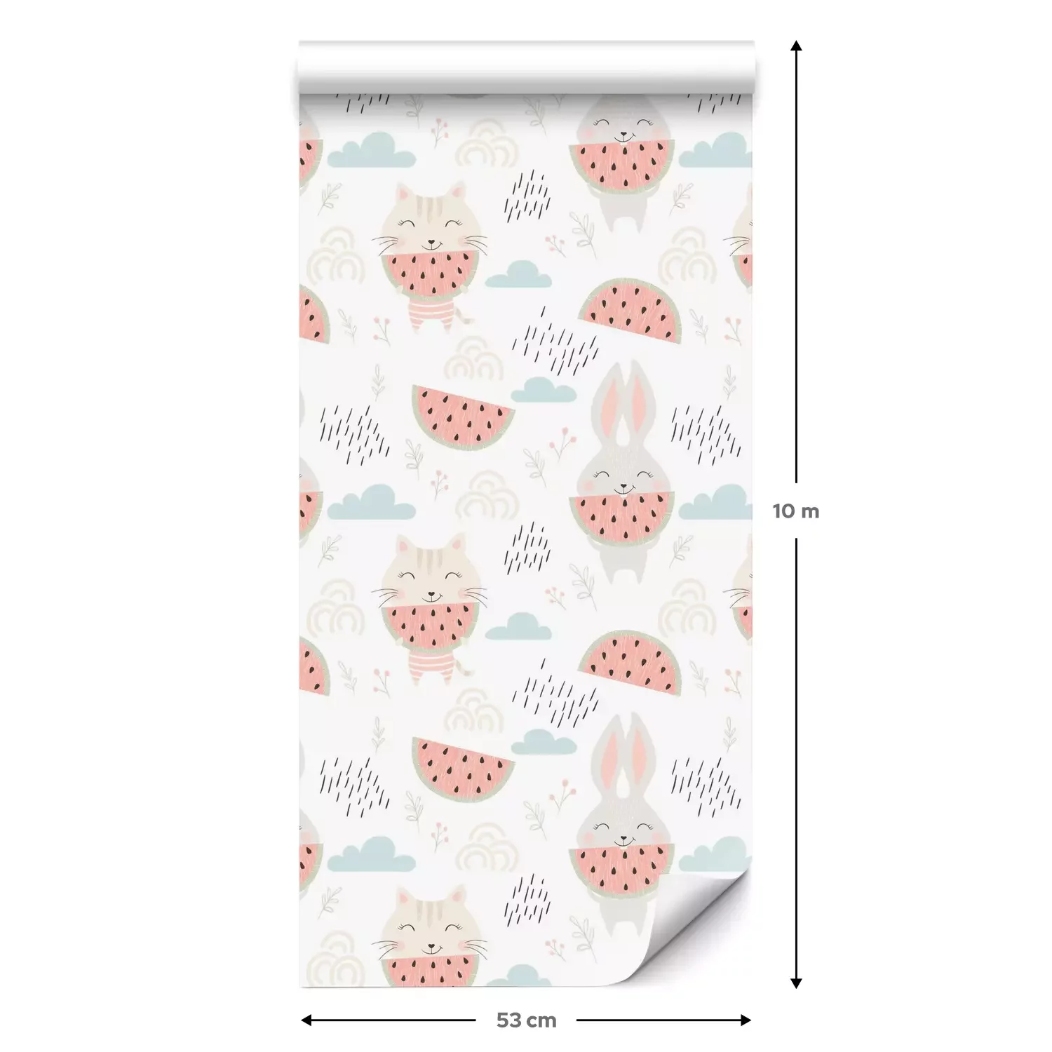 Eine Standard-Tapetenrolle hat die Maße 0,53 m x 10 m und deckt eine Wandfläche von etwa 5 m² ab.