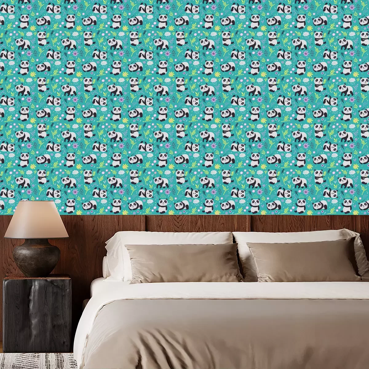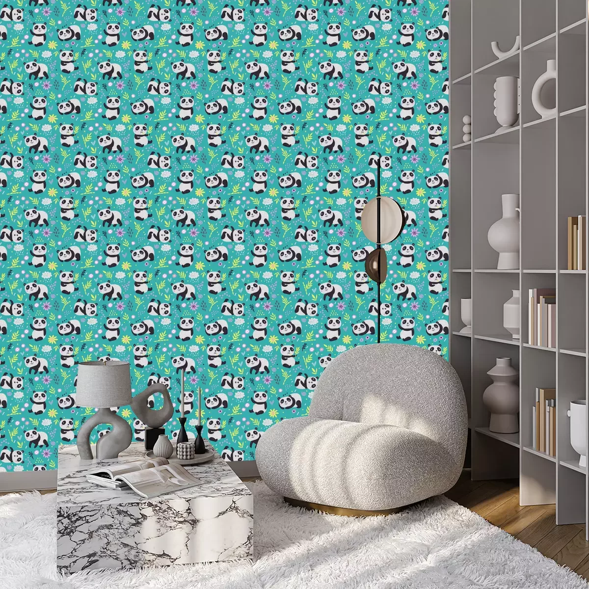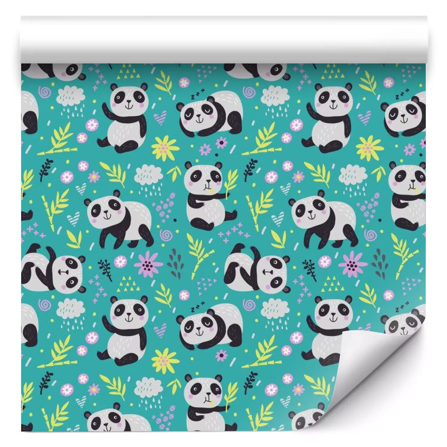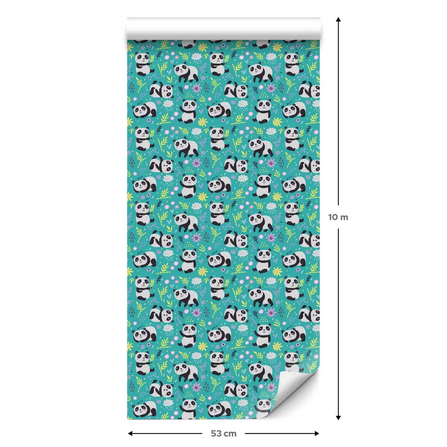 Tapete Babypanda zwischen grünen Pflanzen und Blumen