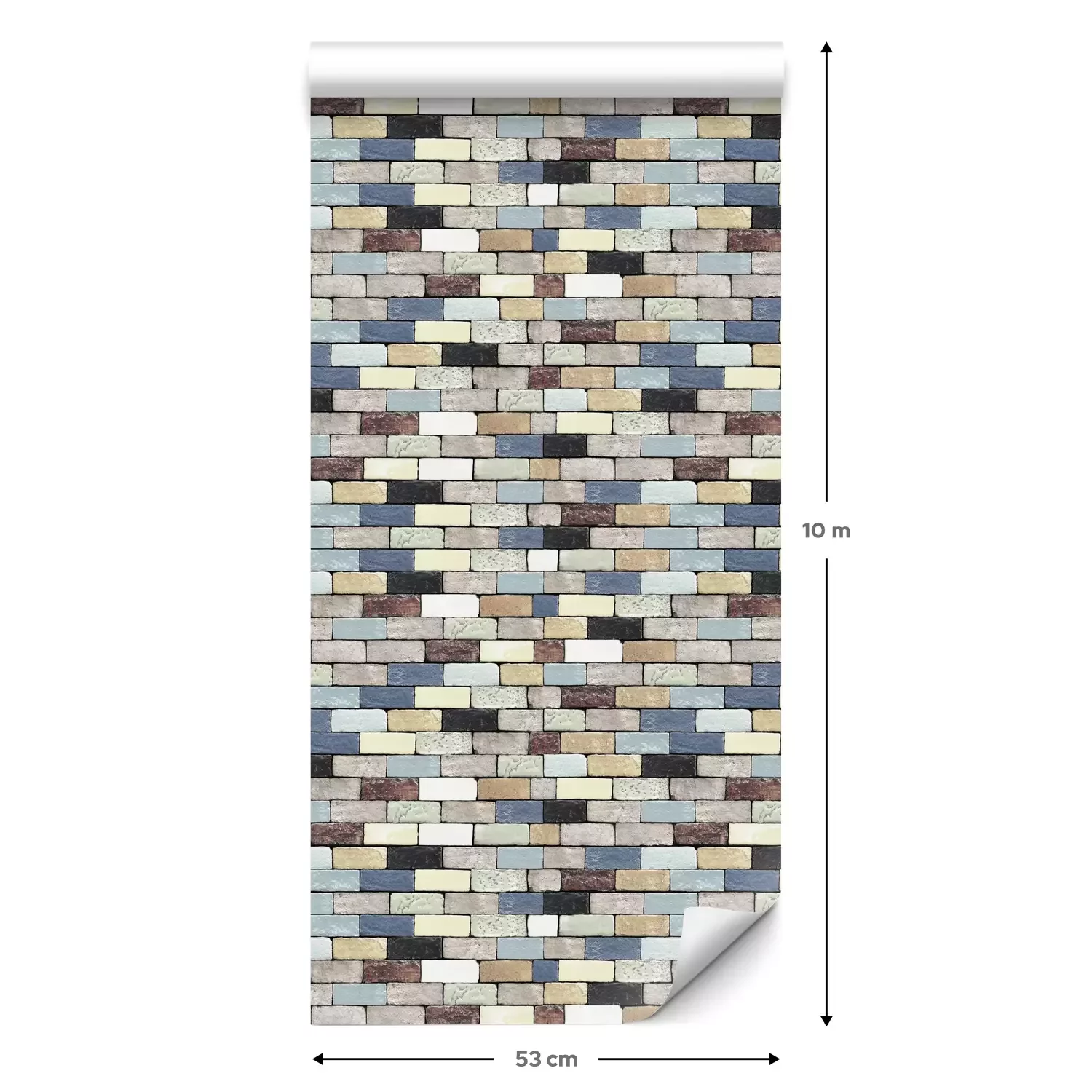 Eine Standard-Tapetenrolle hat die Maße 0,53 m x 10 m und deckt eine Wandfläche von etwa 5 m² ab.