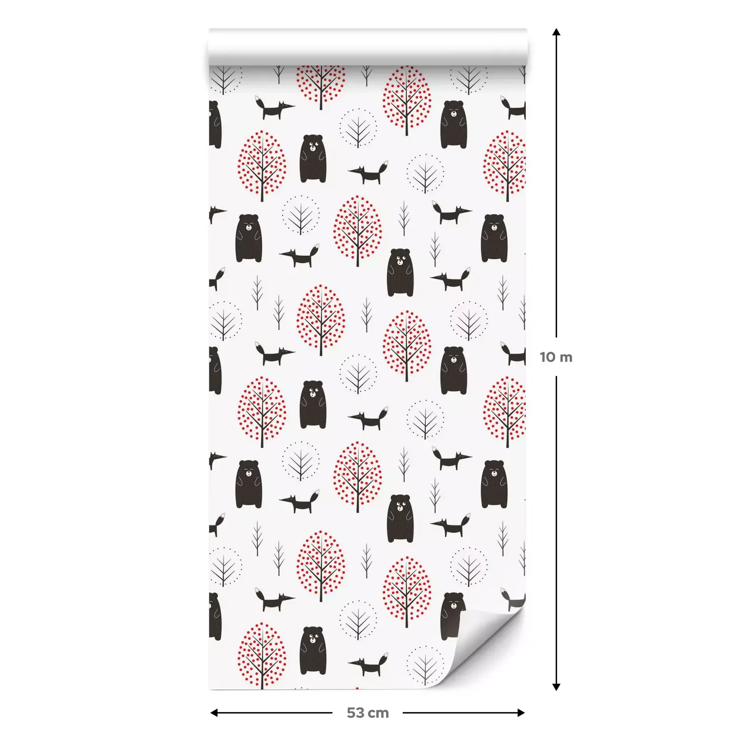 Eine Standard-Tapetenrolle hat die Maße 0,53 m x 10 m und deckt eine Wandfläche von etwa 5 m² ab.