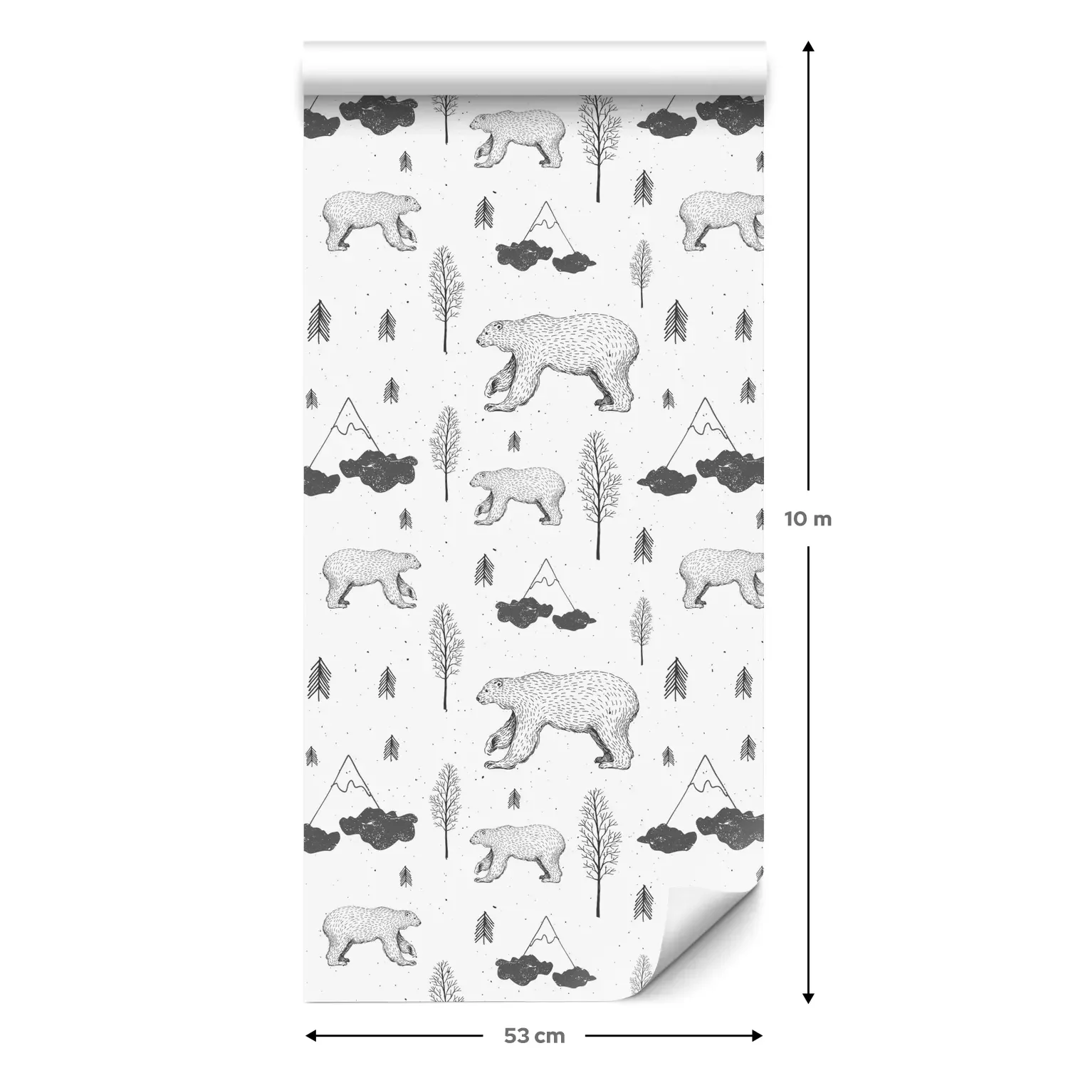 Eine Standard-Tapetenrolle hat die Maße 0,53 m x 10 m und deckt eine Wandfläche von etwa 5 m² ab.
