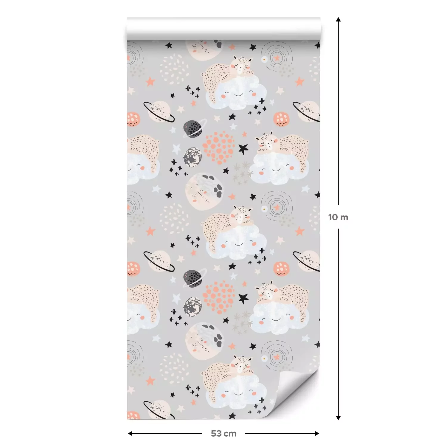 Eine Standard-Tapetenrolle hat die Maße 0,53 m x 10 m und deckt eine Wandfläche von etwa 5 m² ab.