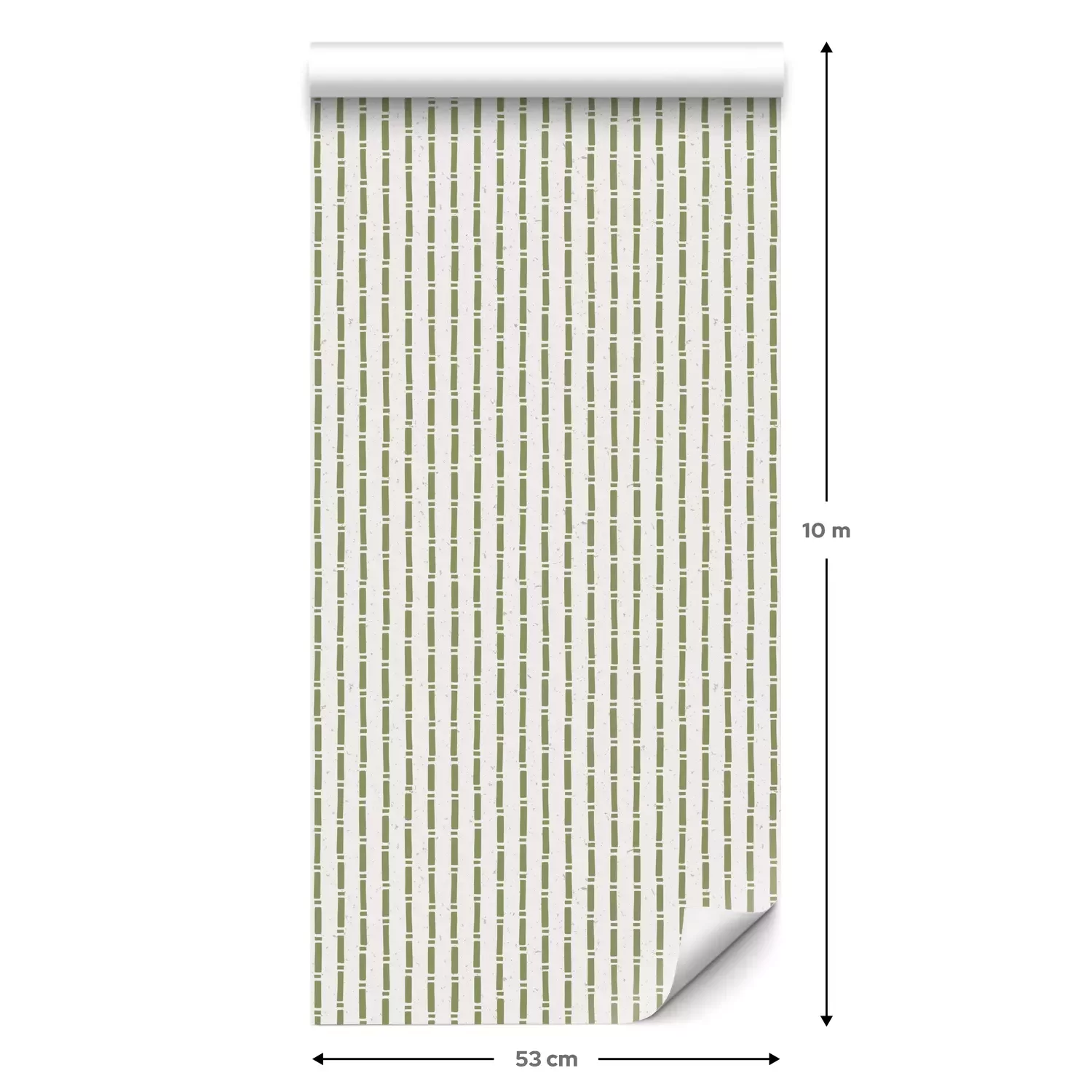 Eine Standard-Tapetenrolle hat die Maße 0,53 m x 10 m und deckt eine Wandfläche von etwa 5 m² ab.