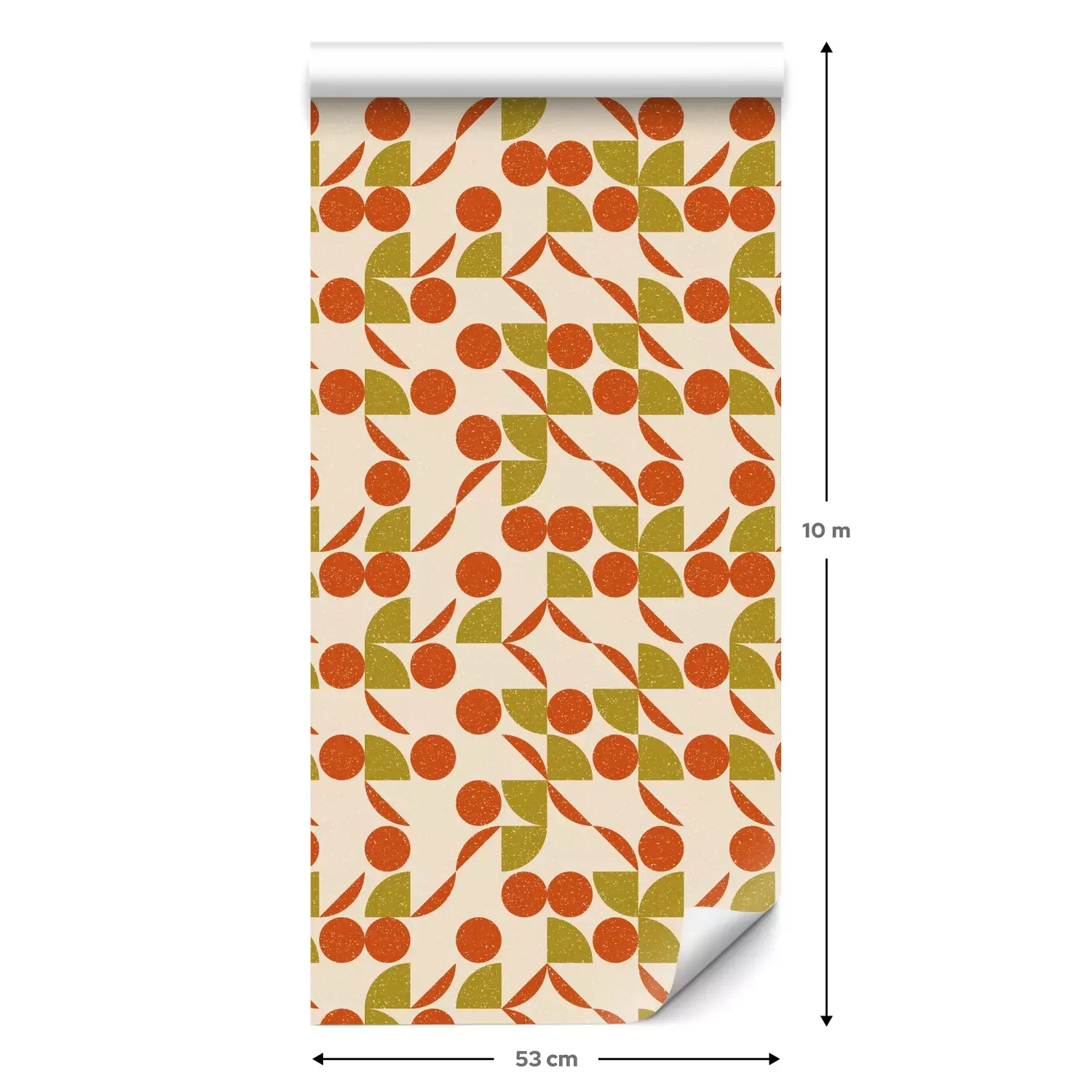 Eine Standard-Tapetenrolle hat die Maße 0,53 m x 10 m und deckt eine Wandfläche von etwa 5 m² ab.