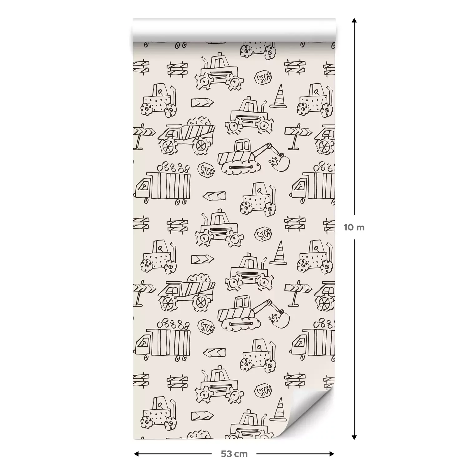 Eine Standard-Tapetenrolle hat die Maße 0,53 m x 10 m und deckt eine Wandfläche von etwa 5 m² ab.
