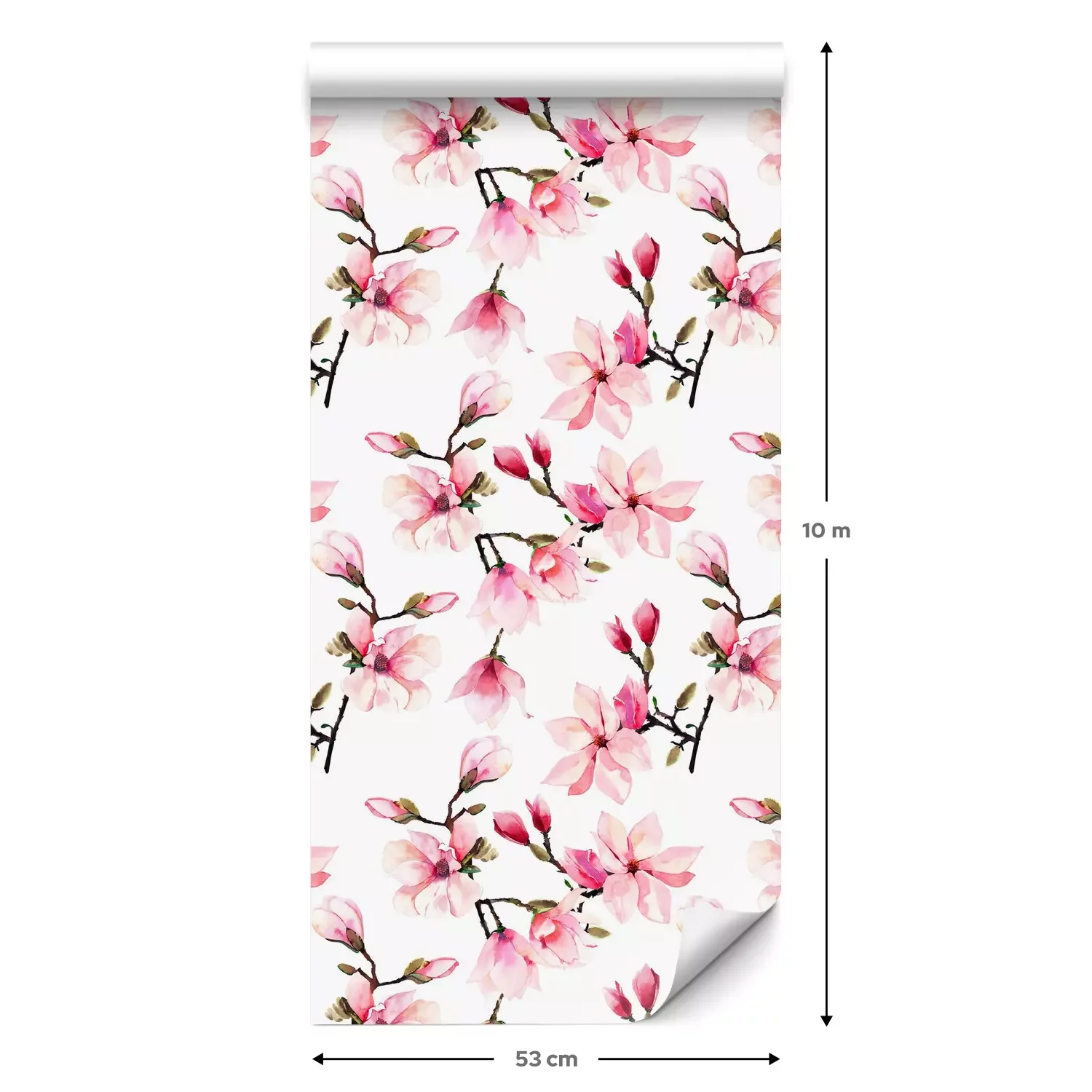 Eine Standard-Tapetenrolle hat die Maße 0,53 m x 10 m und deckt eine Wandfläche von etwa 5 m² ab.