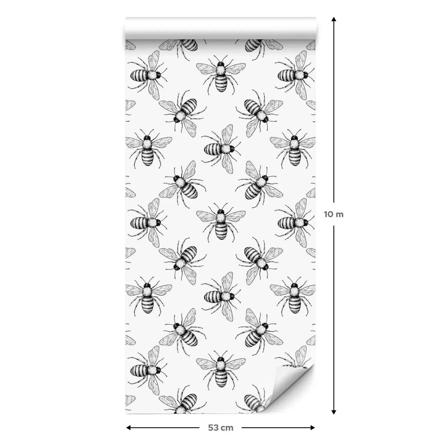 Eine Standard-Tapetenrolle hat die Maße 0,53 m x 10 m und deckt eine Wandfläche von etwa 5 m² ab.