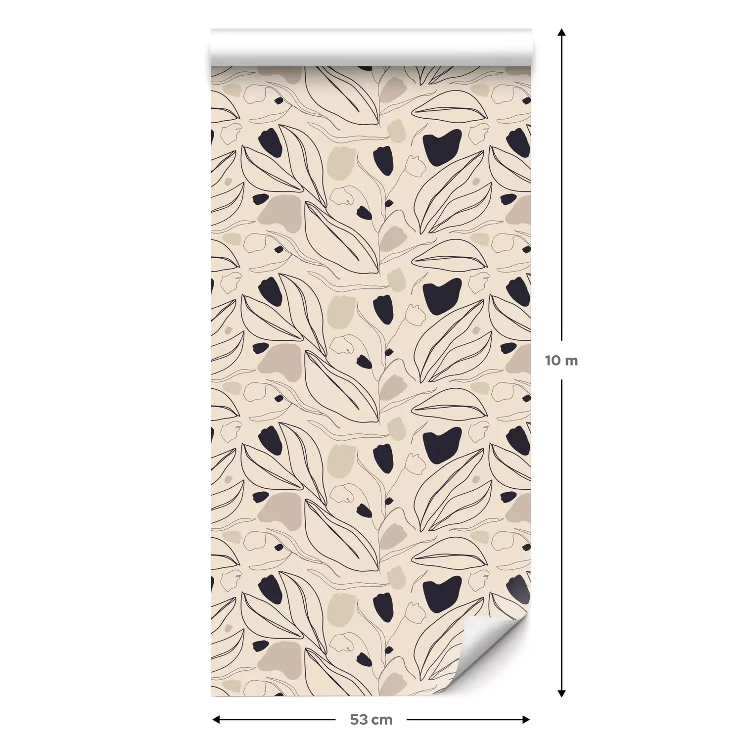 Eine Standard-Tapetenrolle hat die Maße 0,53 m x 10 m und deckt eine Wandfläche von etwa 5 m² ab.
