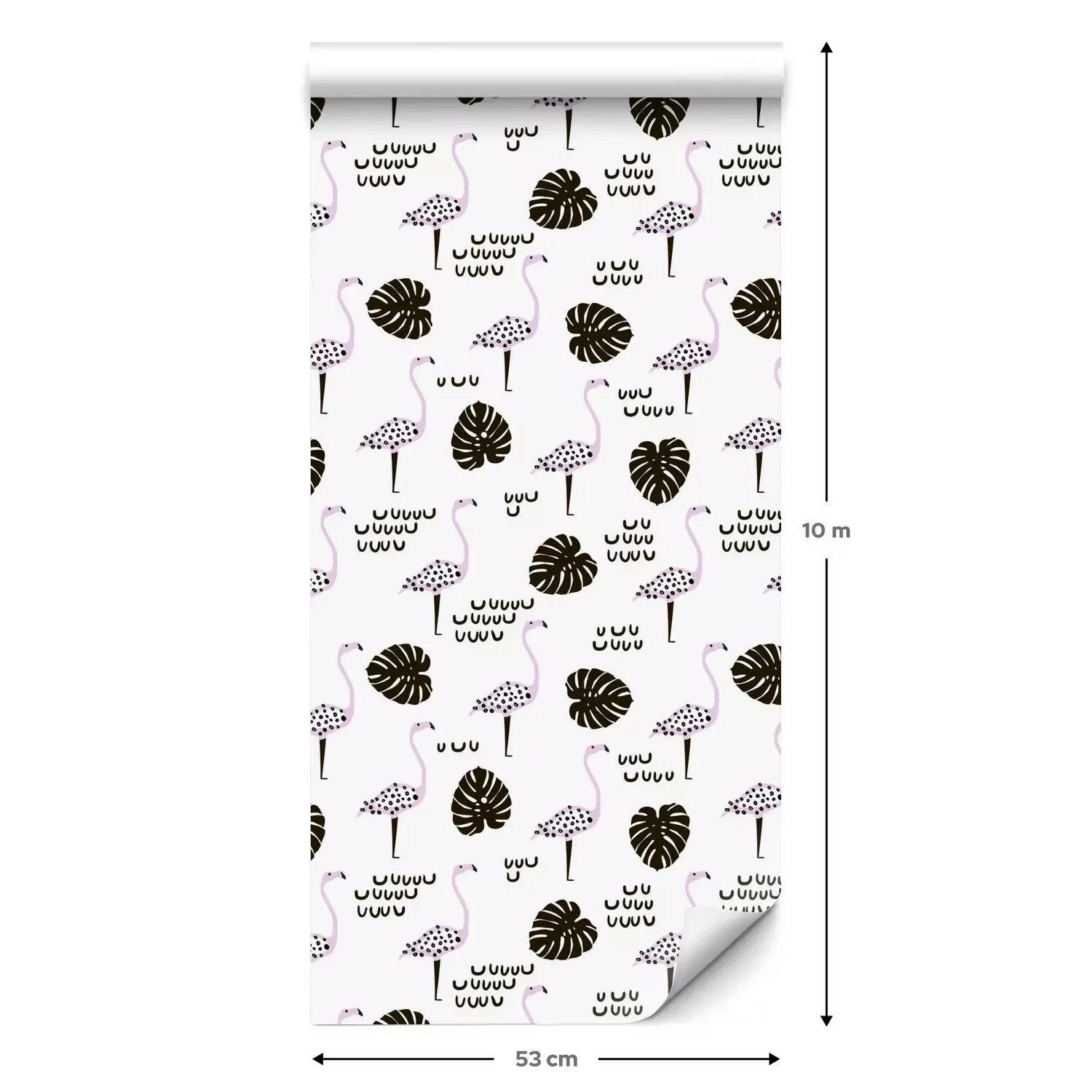 Eine Standard-Tapetenrolle hat die Maße 0,53 m x 10 m und deckt eine Wandfläche von etwa 5 m² ab.