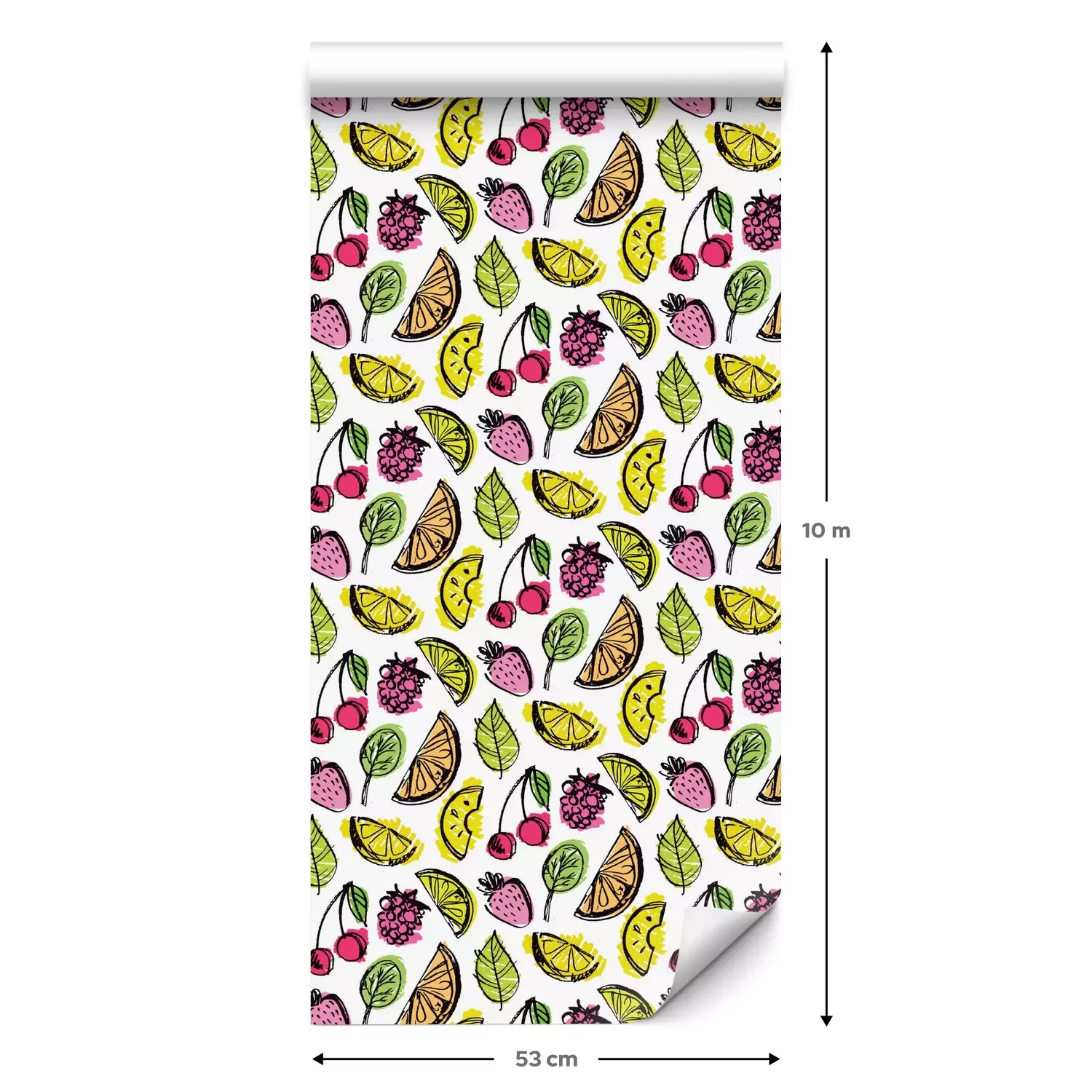 Eine Standard-Tapetenrolle hat die Maße 0,53 m x 10 m und deckt eine Wandfläche von etwa 5 m² ab.