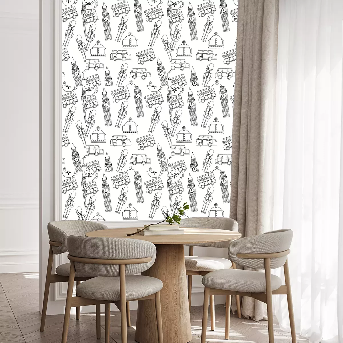 Die Tapete zeichnet sich durch ein sich wiederholendes Muster aus, das ein rhythmisches Design erzeugt. Als Trägermaterial wird hier Vlies verwendet. Sie wird in Rollen mit den standardisierten Maßen 10 m x 53 cm verkauft. Eine Fototapete ist eine spezielle Art von Tapete, auf der ein Foto oder ein realistisches Bild (z.B. eine Landschaft oder eine Stadtansicht) großflächig aufgedruckt ist. Sie wird nicht in Standardrollen verkauft, sondern in Bahnen, die auf die Abmessungen einer bestimmten Wand zugeschnitten sind. So passt das gesamte Motiv perfekt darauf. Zudem können Sie das Material wählen, aus dem die Tapete hergestellt werden soll.