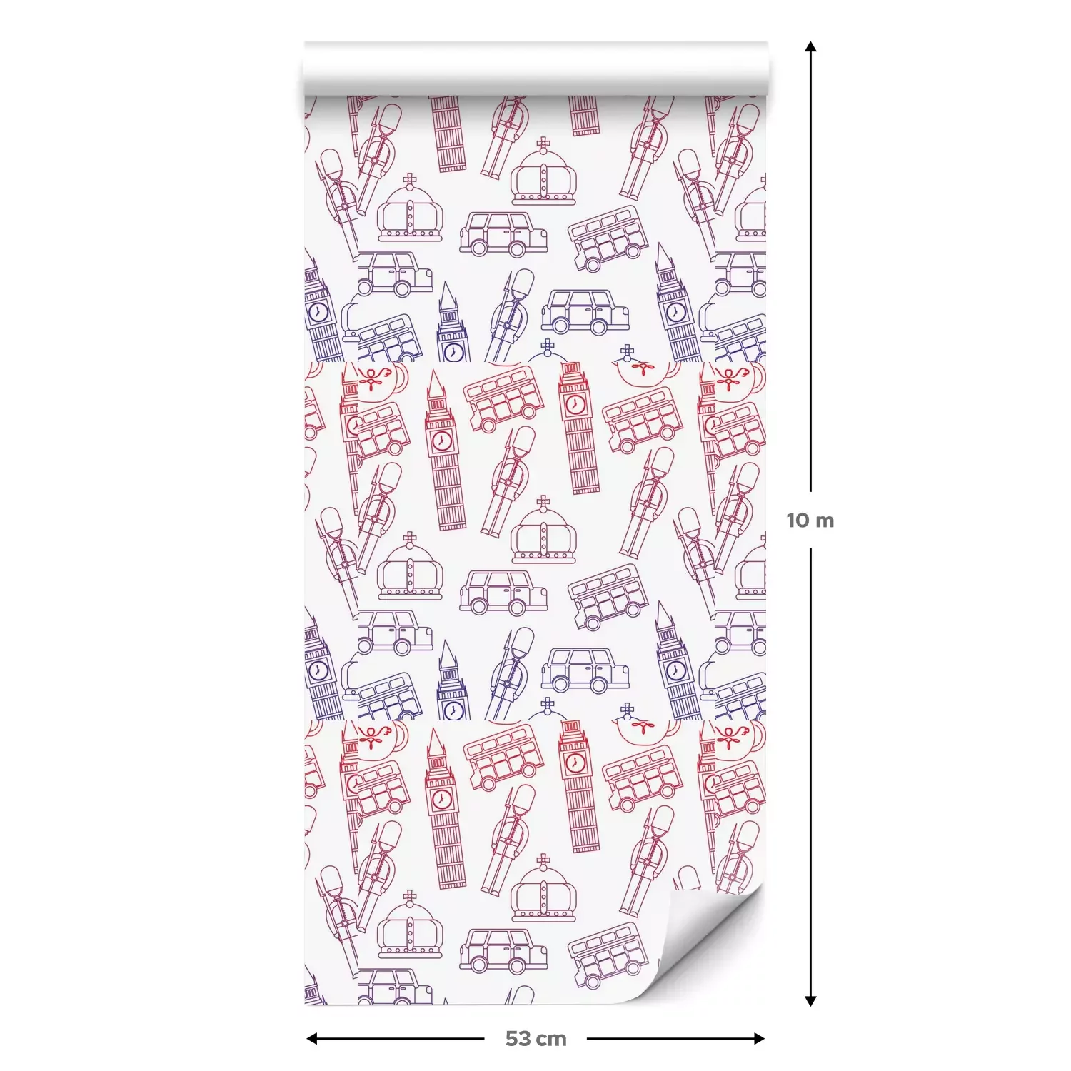 Eine Standard-Tapetenrolle hat die Maße 0,53 m x 10 m und deckt eine Wandfläche von etwa 5 m² ab.