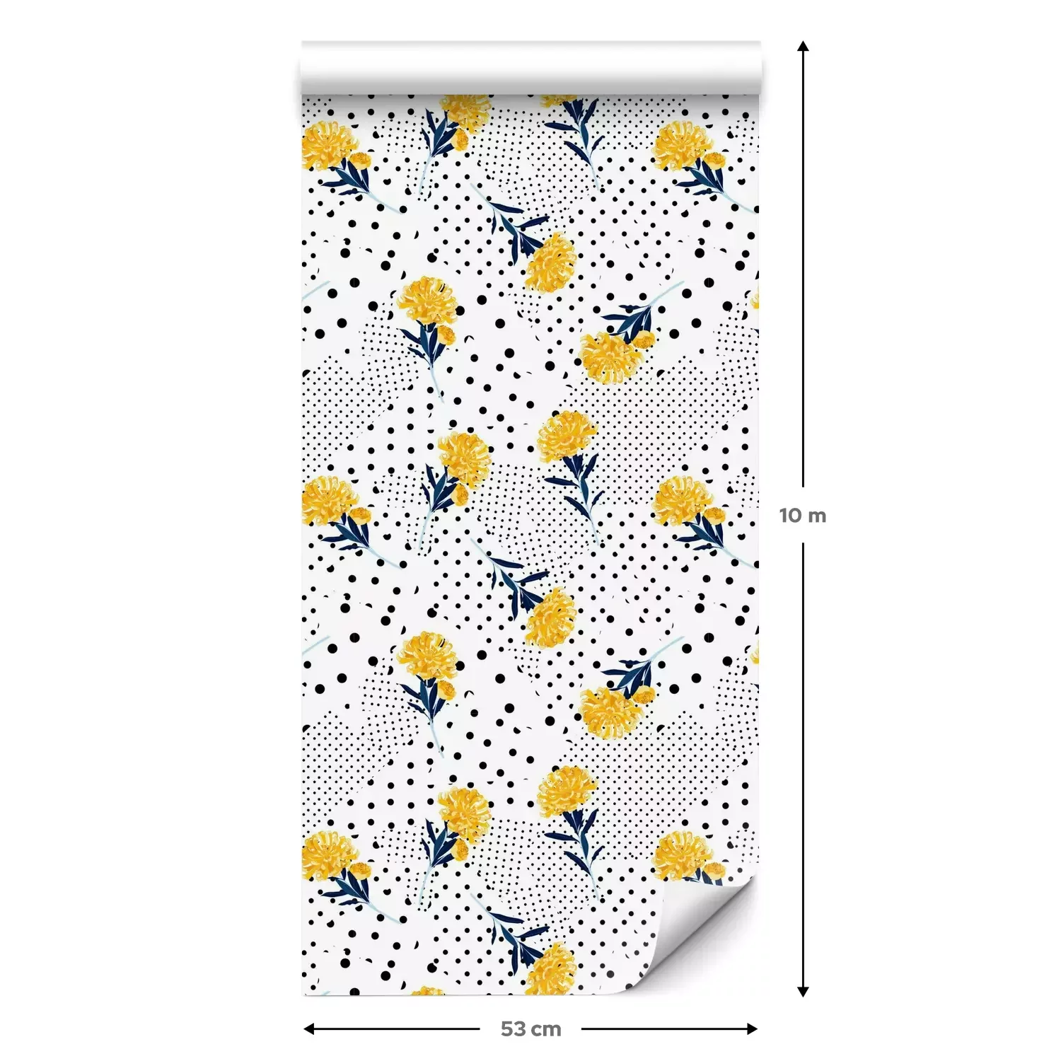 Eine Standard-Tapetenrolle hat die Maße 0,53 m x 10 m und deckt eine Wandfläche von etwa 5 m² ab.