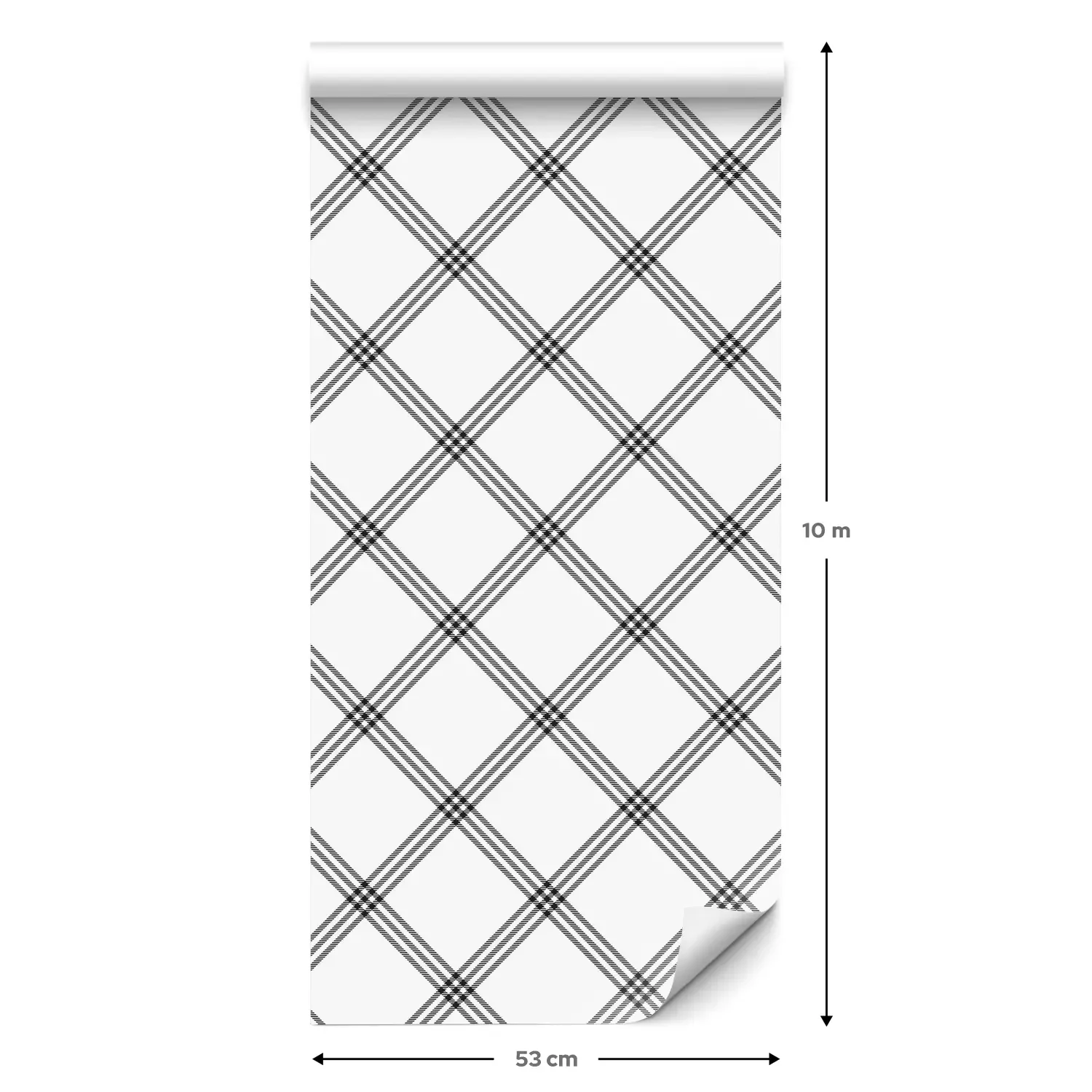 Eine Standard-Tapetenrolle hat die Maße 0,53 m x 10 m und deckt eine Wandfläche von etwa 5 m² ab.